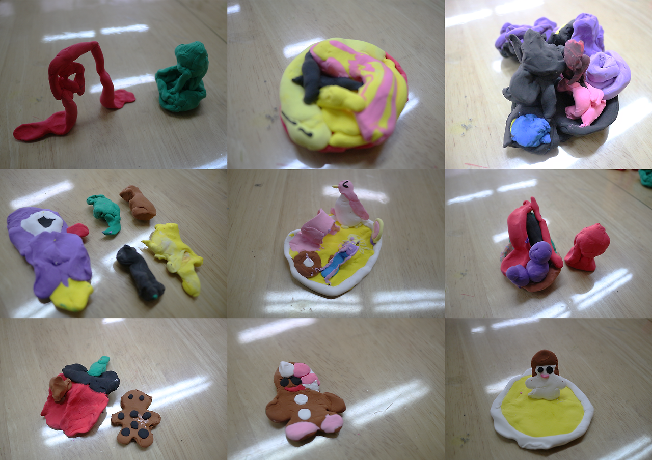 아이들은 각자의 놀이터를 상상하며 클레이로 자신만의 놀이터의 형태를 만들기 시작했다. 어떤 아이는 높다란 미끄럼틀을 만들고, 또 다른 아이는 그네를, 그리고 함께하는 사람들과 동물들까지 만들었다. 다양한 형태와 구조물들이 아이들 손에서 자유롭게 태어났다. 한 아이가 흙을 사용한 작은 언덕을 만들자, 다른 아이들이 흥미를 느끼고 함께 언덕을 크게 만들기 시작했다.