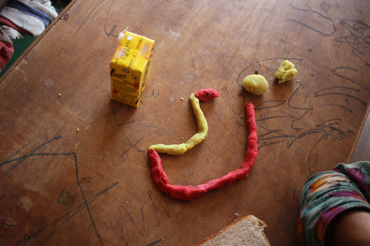 준비해 온 놀이터 워크숍을 진행하기 위해 아이들에게 ‘놀이터가 무엇인지 알아?!’라고 물어보았다. 아이들은 고개를 절레절레 저었고 역시나 불가촉천민 마을에서 놀이터가 무엇인지 아는 것은 거의불가능한 현실이었다. ‘괜찮다. 모르면 알면 된다. 나도 할머니 손에 놀이터에 가기 전에는 놀이터가 무엇인지 몰랐으니 말이다.’라고 스스로 마음을 다독이며 놀이터가 무엇이고 어떤 공간인지에 대해 설명해 주었다. 그리고 마지막으로 “너희들이 더 자유롭고 신나게 놀 수 있게 만들어진 곳이야.”라고 설명을 마무리하며 워크숍의 재료인 클레이를 나누어주었다.