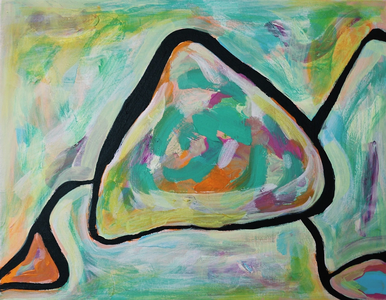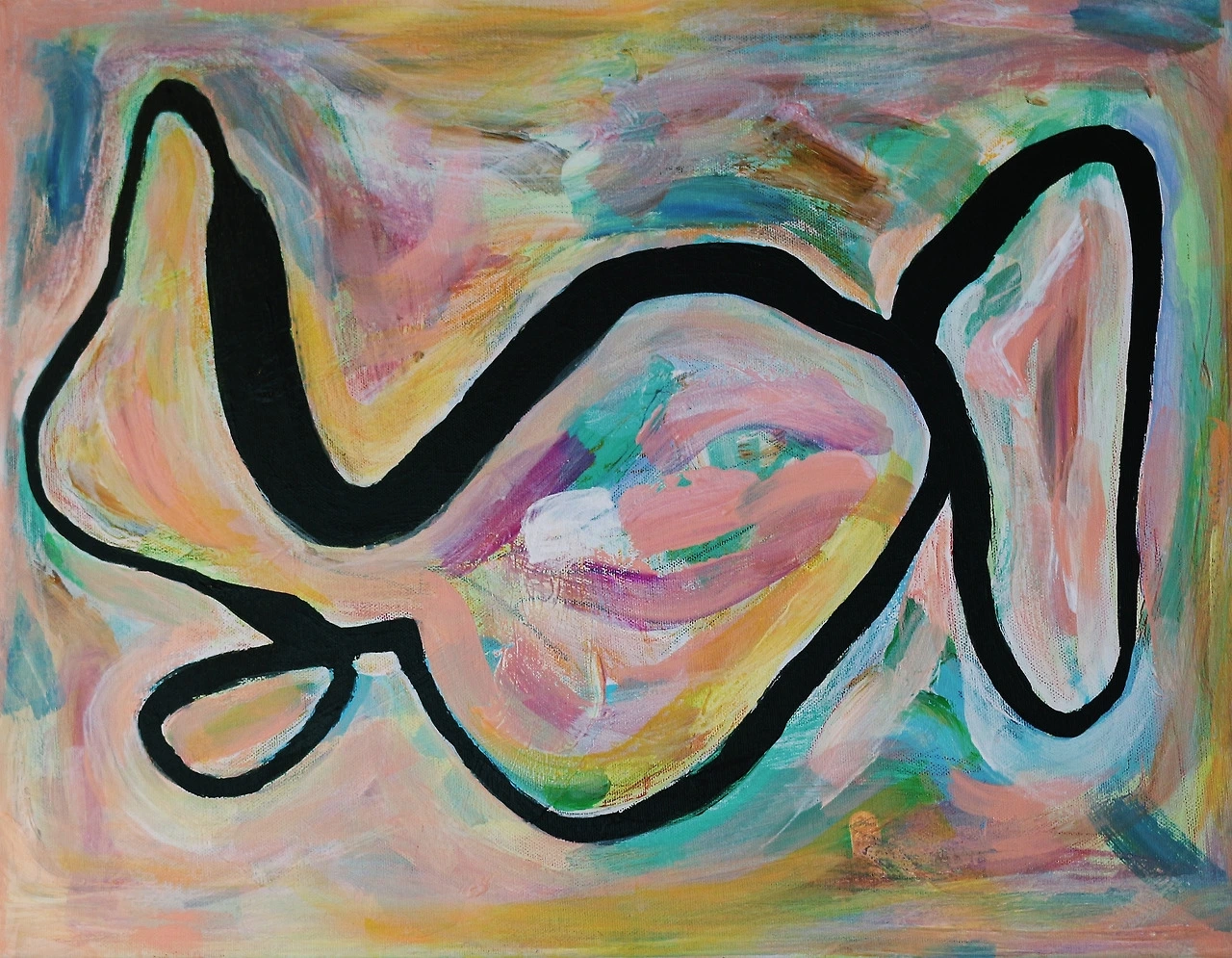 Rosenly(로슨리)라는 제목을 지닌 이 작품은 내 마음으로 낳은 딸, 로슨리를 위한 그림이다. 지난 브런치에 올린 글 가슴으로 낳은 딸들을 보면 그녀에 대한 이야기가 잘 담겨 있다. 작품 속 검정선은 로슨리 안에서의 나를 그리고 배경 또한 그 아이를 생각하며 그린 감정을 상징한다. 특히나 그릴 때 아이의 어리디 어린 해맑은 시간이 이미 지나가고, 아픈 현실을 지나온 깊고 둔탁해진 눈망울을 떠올렸다.