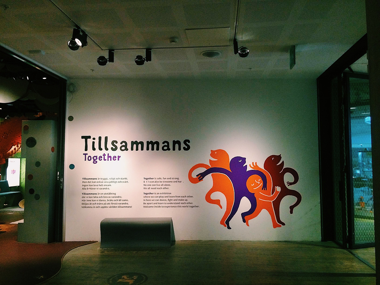 수업을 듣던 중 놀이터 레퍼런스를 찾기 위해 동네 주변의 Museum of World Culture 안에 있는 실내 놀이터를 발견하였다. 뮤지엄 입구에 들어서자마자 보이는 것은 'Tillsammans =Together'이라는 단어. '어린아이들에게 함께한다는 것은 어떤 의미일까?, 나도 오늘만큼은 어린이가 되어보자!'라는 강한 열망을 품고 뮤지엄 입구 주변에 줄 서있는 많은 어린이들과 함께 호기심 투성이인 공간에 한 발자국 발걸음을 두었다.