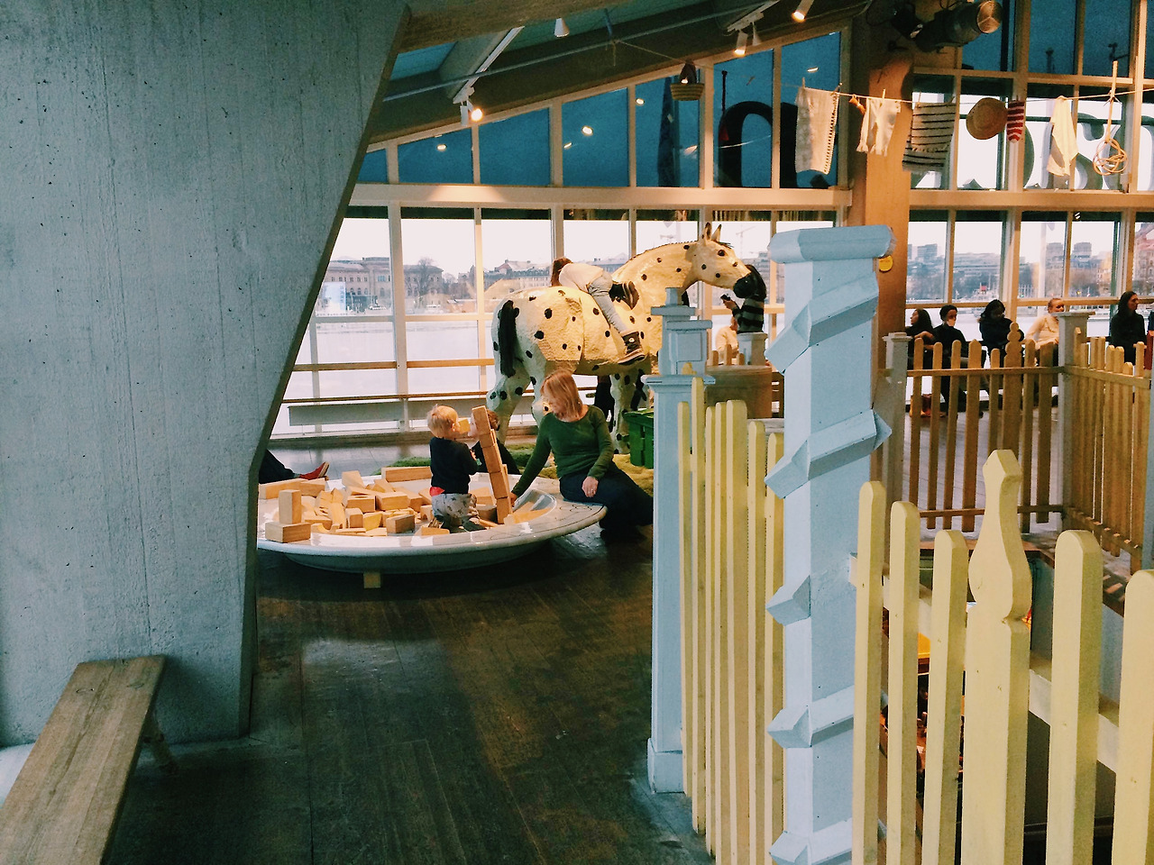 반면 활동적인 공간은 언제나 활발한 어린이들로 가득했다. 진정한 즐거움을 거짓 없이 내뿜는 아이들의 웃음소리에 나도 모르는 사이에 기분이 한껏 들떠 있었다. 그 가운데 있다 보니 잔뜩 흥이 올랐고 레퍼런스를 찾겠다는 핑계로 어린이들을 따라 이것저것 다양한 놀이들을 경험해보았다. 아주 다행히도 스웨덴은 바이킹족이기에 어린이들도 큰 체구를 가지고 있었고 그만큼 놀이기구들도 튼튼해서 성인인 내가 놀아도 큰 무리가 없을 정도였다.