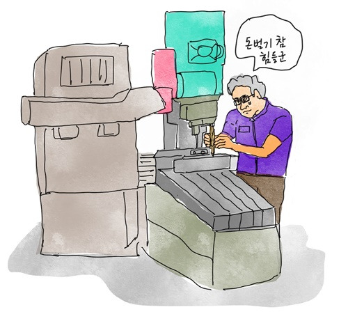 다시 일자리를 찾았다. 월급이 적어 그렇지 일자리는 많았다. 이번에는 자동차 부품 생산 공장이었다. 초보자도 환영이었다. 출근하면 반장이란 사람이 어떤 기계 앞으로 데려가 간단히 시범을 보여주었다. 그대로 따라 하면 되었다. 기계는 그날그날 달라졌다. 대개 떡가래 굵기의 짧은 쇳덩이를 모양에 맞춰 깎거나, 그런 쇳덩이에 구멍을 뚫거나, 몇 조각으로 자르거나 하는 일이었다. 대단한 기술을 요하는 것은 아니었다. 깎는 것은 기계가 했으니 노동 강도도 세지 않았다. 할만했다. 9시부터 6시까지 일하면 한 달에 60만 원 준다고 했다.