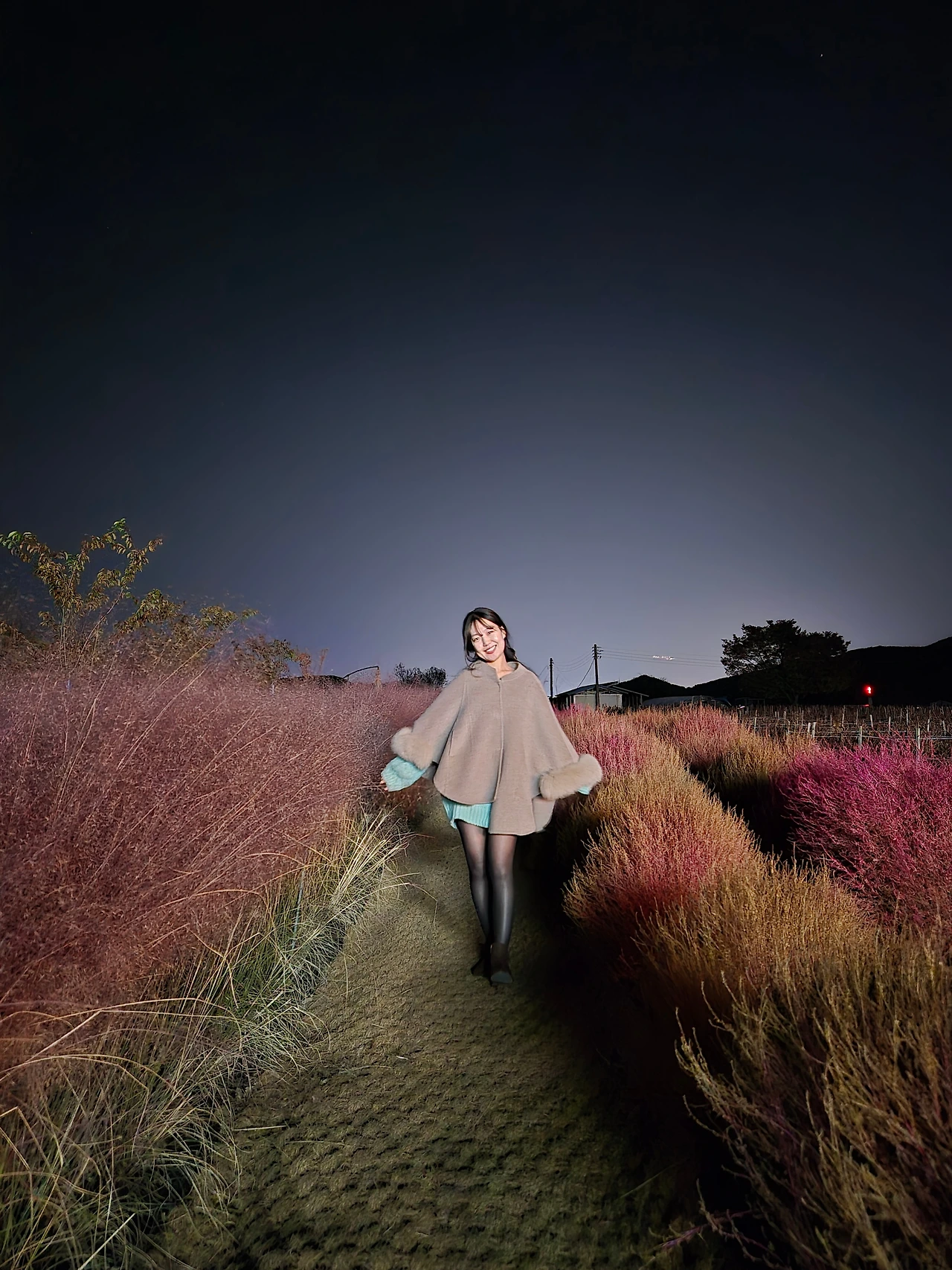 어둡지만 핑크뮬리 포토존을 걷다가 사진까지 찰칵!