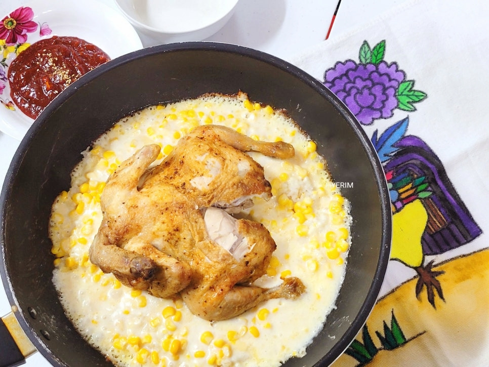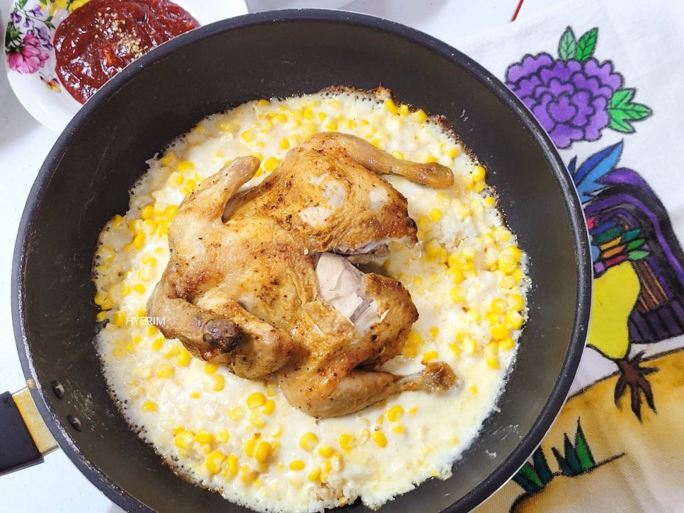 누룽지통닭구이 레시피 연말 홈파티 요리 추천 콘치즈, 양념치킨소스