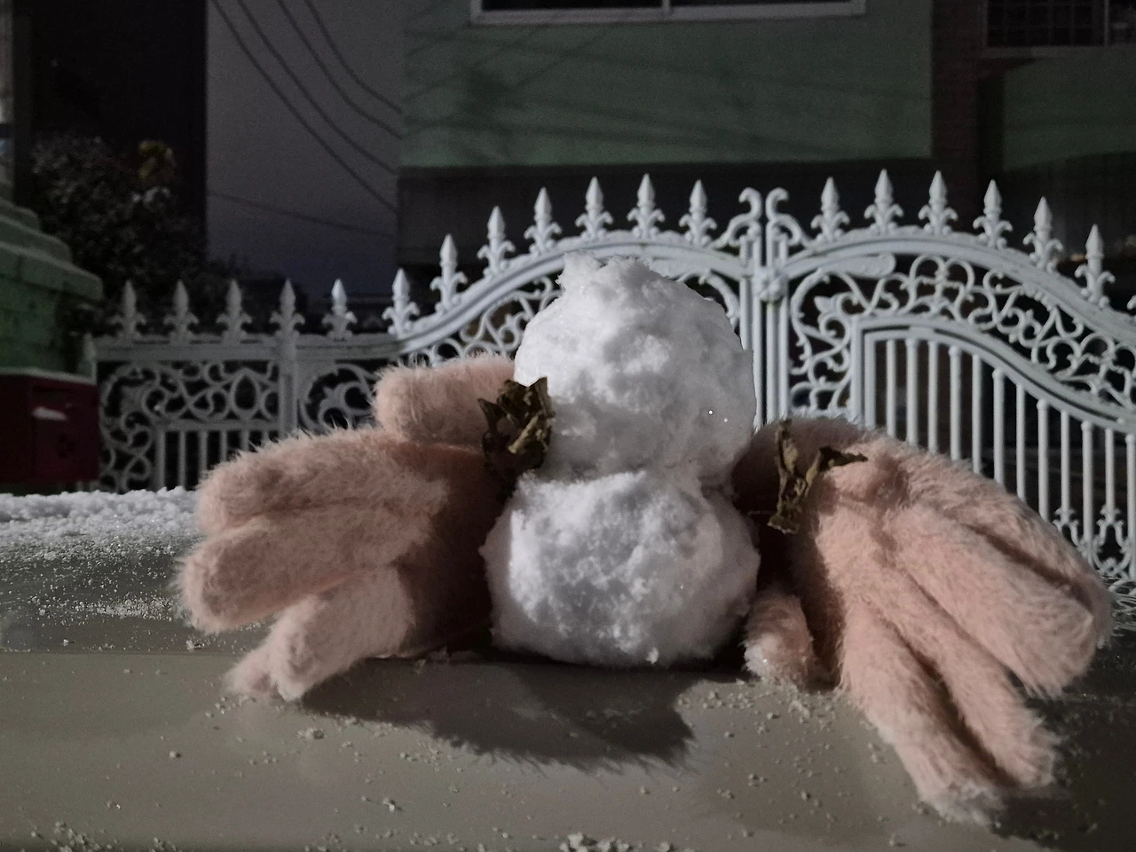 방에 가서 핸드폰을 갖고 다시 밖으로 나왔다. 주변에 보이는 나뭇잎으로 손을 만들어주고 끼고 있던 핑크빛 장갑은 벗어서 옆에 놓고 사진 찍기