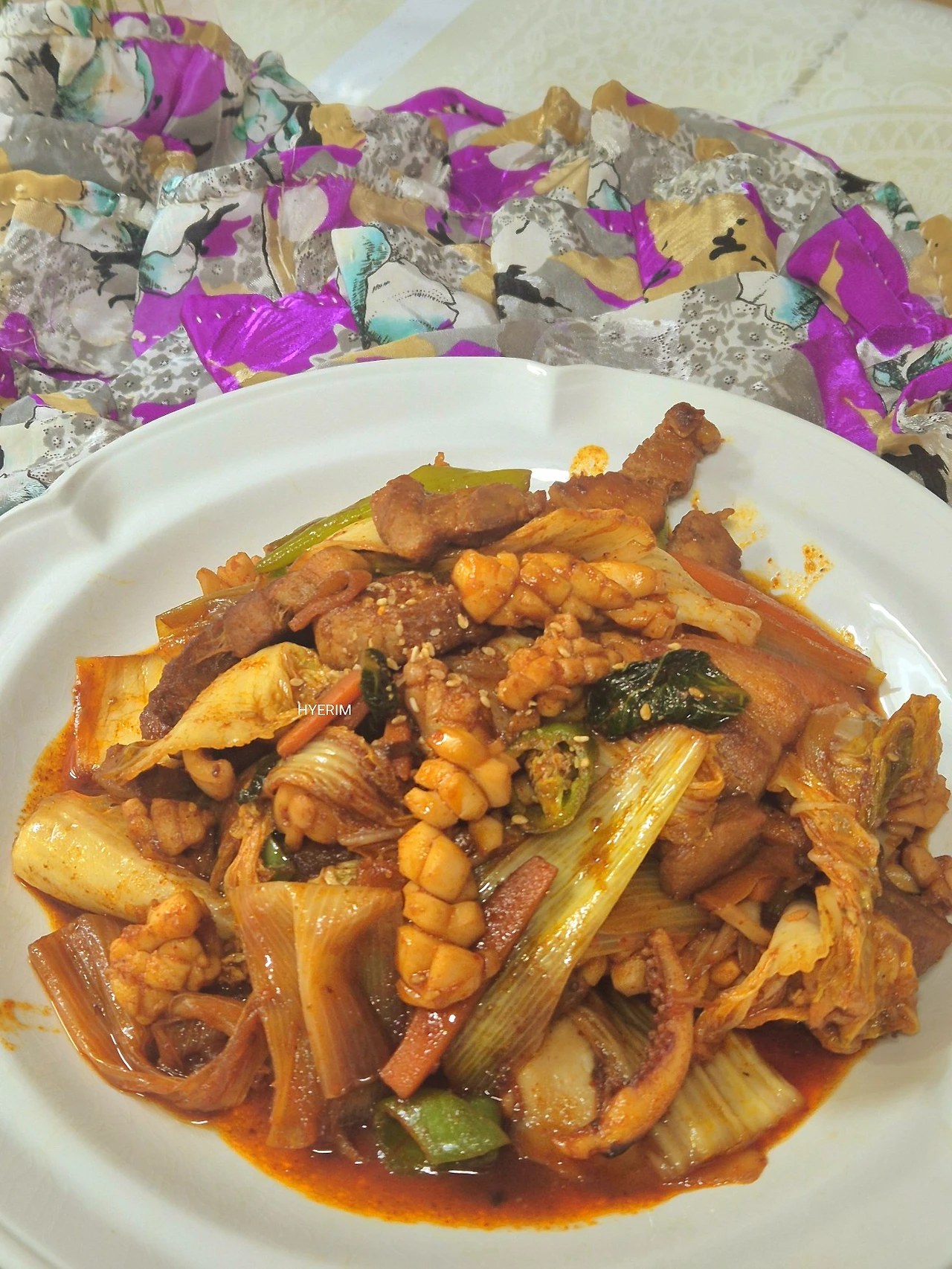 오징어볶음 레시피 2마리 | 삼겹살 넣고 오삼불고기 양념 만드는 법