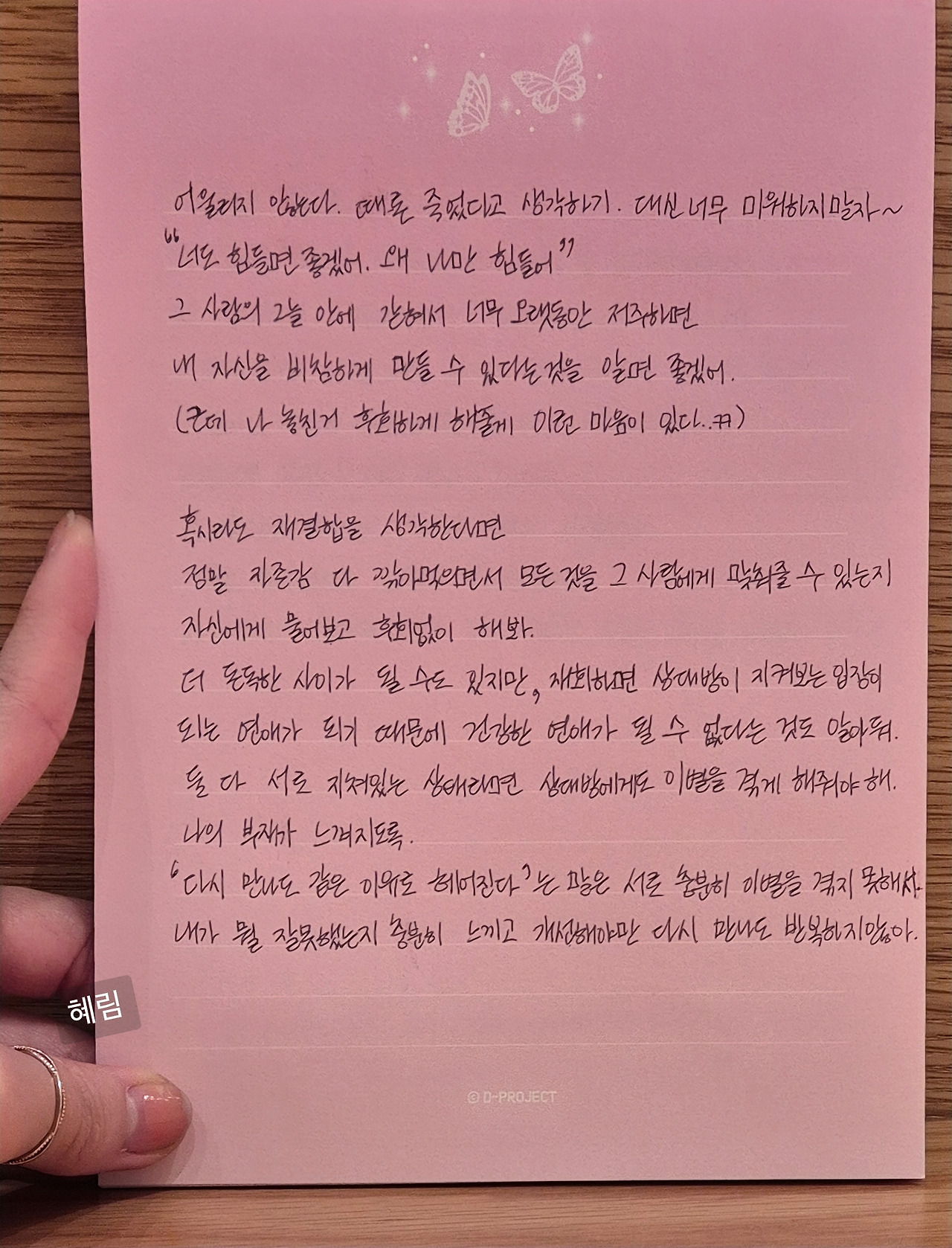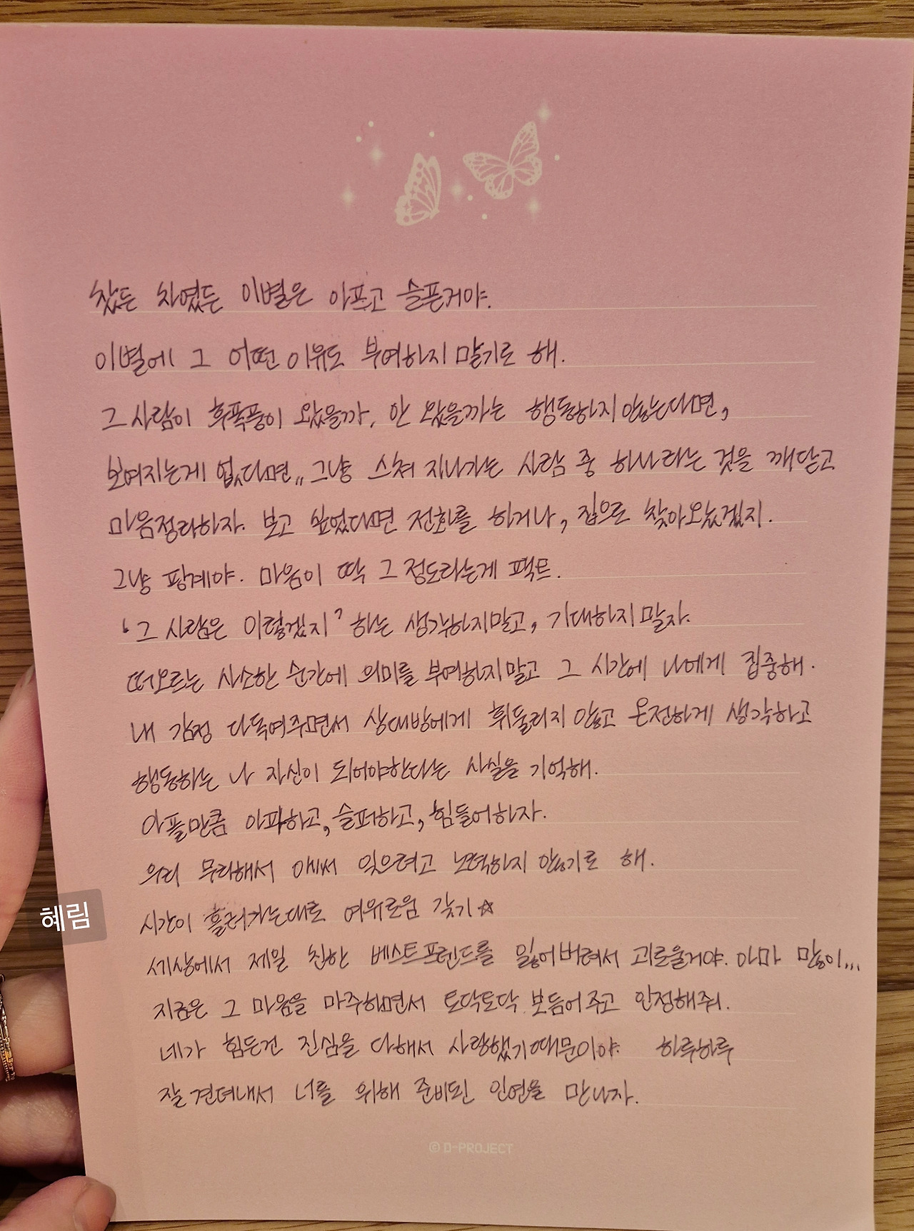 끄적이면서 기록하는 혜림의 브런치스토리입니다❤️ 평범한 일상 속 공감하면서 마음 깊은 곳에 울림과 감동, 위로를 주고 함께 생각하는 메시지 담은 글들이 공유되기를 기대합니다.