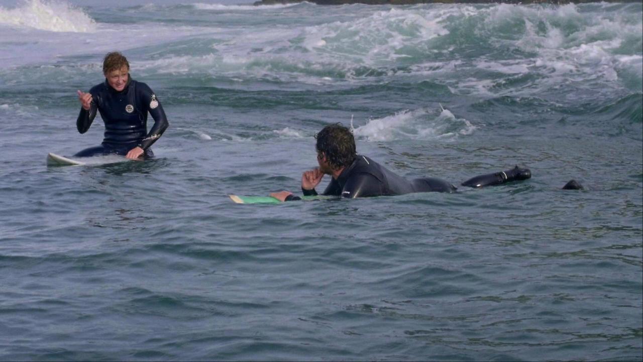 <비트윈 랜드 앤 씨>의 매력은 서퍼들의 고민을 파도를 타는 서퍼들의 모습으로 보여준다는 점이다. 흔한 다큐멘터리의 방식처럼 카메라 앞에 주인공을 앉혀놓고 인터뷰를 하며 감동적인, 혹은 구슬픈 음악을 틀지 않는다. 로스 휘태커 감독은 그 무난한 방식을 비웃기라도 하듯 서퍼들의 현실을 그들이 모허 절벽을 내려가는 모습으로, 바다 한가운데 떠 있는 모습으로, 파도에 빨려 들어가는 모습으로 대신한다. 서퍼들이 파도를 탈 때만큼은 어떠한 배경음악 없이 온전히 그들만의 세계에 들어가 그대로 카메라에 담아낸다. 감독의 감각적이고, 따뜻한 시선은 곧 <비트윈 랜드 앤 씨>가 품은 인생의 소용돌이로 나타난다.