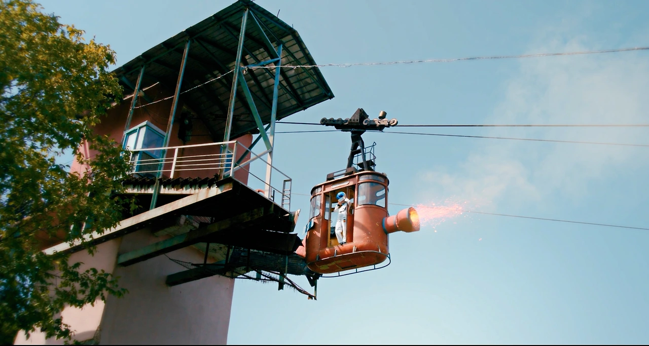 특별한 마법을 부리는 듯한 곤돌라는 교통수단으로써의 유일성 외에도 중요한 가치를 지니고 있다. 바로 ‘자유로운 소통’, 사람들에게 곤돌라는 자기를 포함한 모두의 일상에 평안을 주는 귀중한 소통 창구다. 사람, 가축, 시신을 담은 관은 물론이고 서로를 향한 따뜻한 마음도 실어 나르는, 없어선 안 될 마을 집배원 같달까. 분명 인간에 의해서만 작동되는 수동적인 기계에 불과한데, 날개를 단 듯 무척이나 자유롭게 하늘을 누빈다. 이동이란 단순한 움직임이 사람과 사람을 잇는 낭만적인 과정으로 변주되는 것이다. 관이 곤돌라에 담겨 옮겨지자 하던 일을 멈추고 떠난 자를 가슴 깊이 추모하고, 이브와 니노의 사랑을 응원하기 위해 다 함께 음악회를 여는 사람들의 모습, 유일한 악당인 곤돌라 사장의 횡포에도 지지 않고 모두를 위해 곤돌라를 운행하는 승무원들의 의지가, 그 모든 마음의 합일이 이를 증명한다. 이바와 니노의 이야기에서 마을 공동체의 이야기로 확장되는 순간이며, 영화는 이 과정을 마지막까지 따스하고 아름답게 풀어낸다.