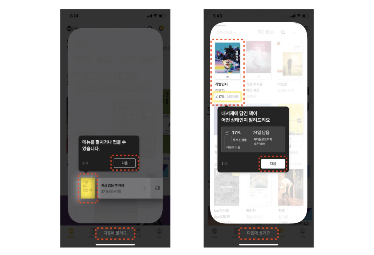 그래서 밀리의 서재는 이렇게 사용자를 집중시킵니다.