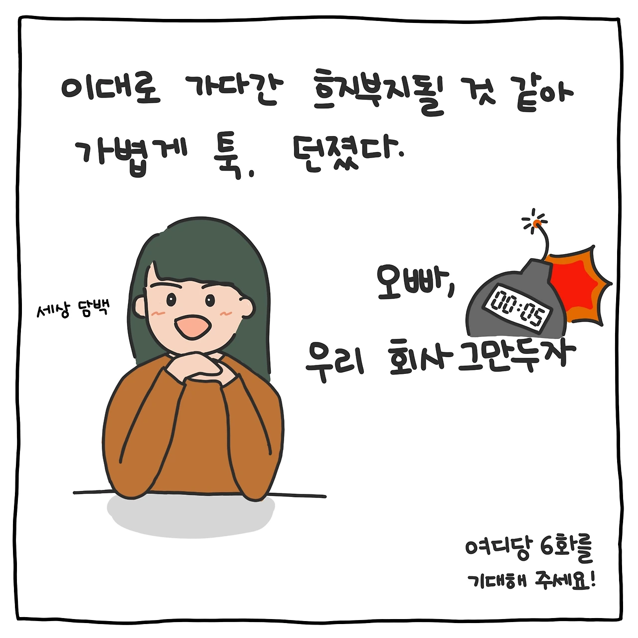 다소 무모한 결정이었지만 마냥 충동적이라고만 볼 수 없는 것은 불씨를 당겼을 때 불이 화르륵 붙은 게 아마도 각자 사회생활하며 눌러왔던 것들이 어느 정도 쌓일만큼 버텼다는 의미일거라 보기 때문이다.