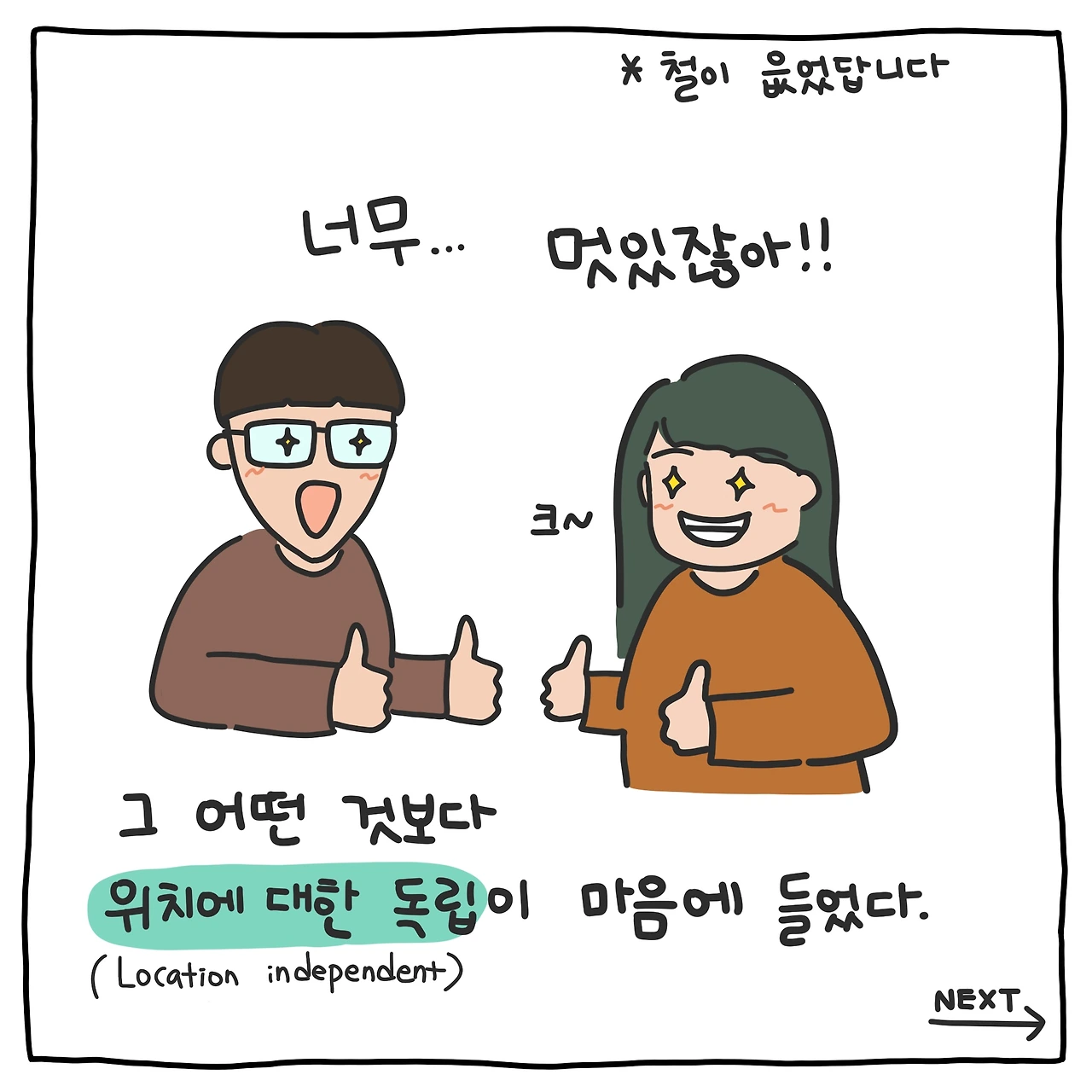 그렇게 친구, 동료들과 나란히 달리던 도로에서 우리는 핸들을 틀었다. 지금 시점에서 말을 조금 더 보태보자면, 새로운 길에는 새로운 친구와 동료들이 걷고 있었다. 그들은 직진 최단 코스만 찾기보다 구불구불하지만 자신의 길이 맞는지 끊임없이 확인하며 걷기를 멈추지 않는 사람들이었다.