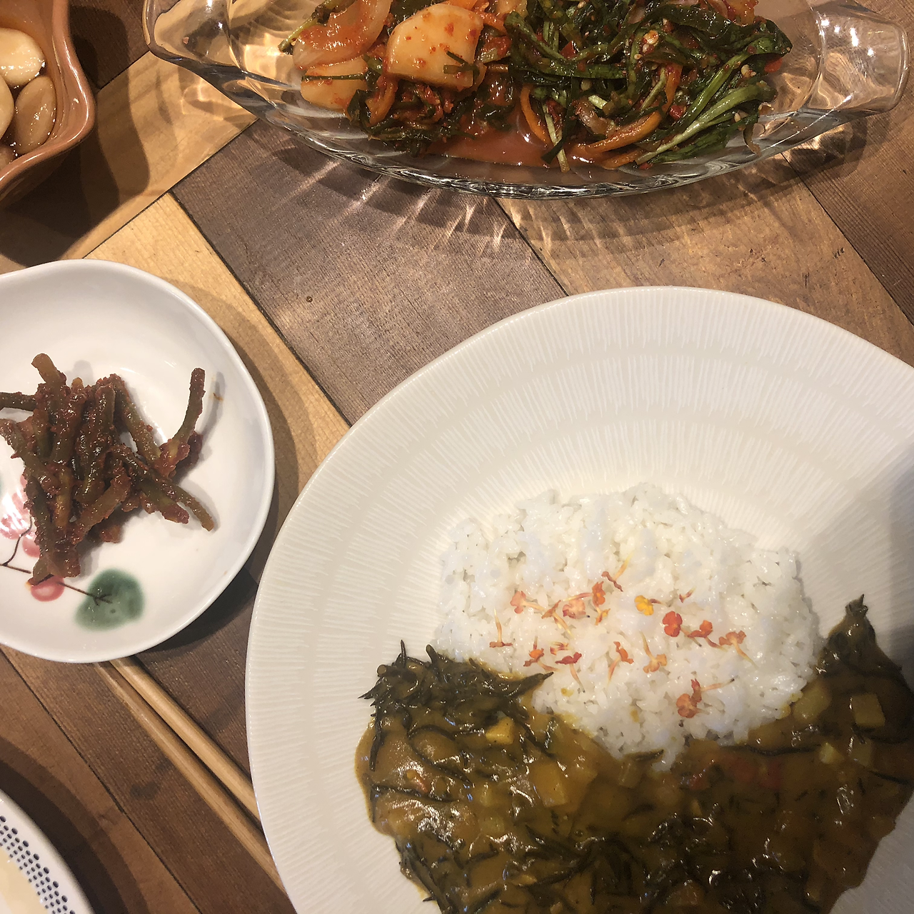 언니는 다음날 조식으로 자두 카레를 만들어주었다. 황토색 카레 위에 새끼손톱만 한 붉은빛 꽃을 얹어주었는데 그 꽃에서 카레 색에 묻힌 자두가 다시 곧 피어날 것만 같았다. 한 숟갈을 떠먹으니 짙은 카레향과 자두의 새콤한 향이 같이 배어 나왔다. 나는 어떻게 이렇게 조화롭게 맛을 잘 살렸냐고 물었고 언니는 '그래? 맛있어~?'라고 특유의 상냥한 말과 함께 행복하다는 듯 웃었다. 카레뿐 아니라 대낮에도 빛이 들어오지 않는 어둑한 창고의 모살코지 카페도 노란 조명 아래 푸른색 그림들이 곧 바다가 되어 바닥을 찰랑일 것처럼 놓여 있었다. 붉은색 그림은 곧 노을처럼 카페를 물들일 것 같고 동네 아이들의 그림 속 사람은 아무도 없을 때마다 카페를 뛰어다닐 것 같았다.