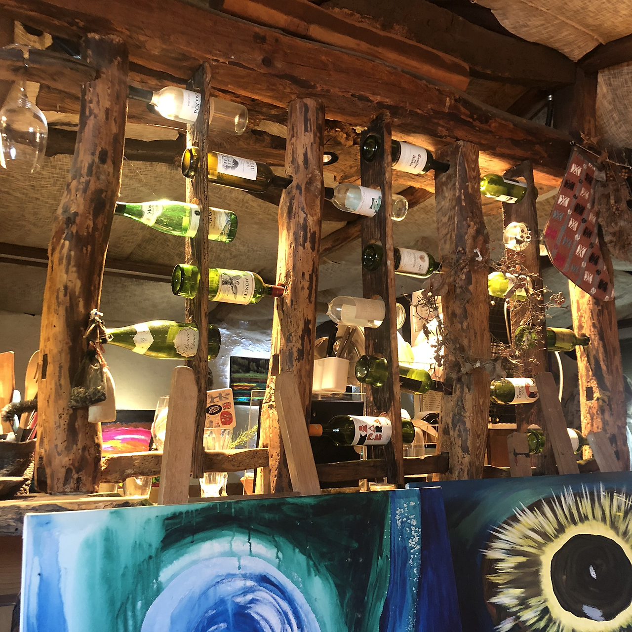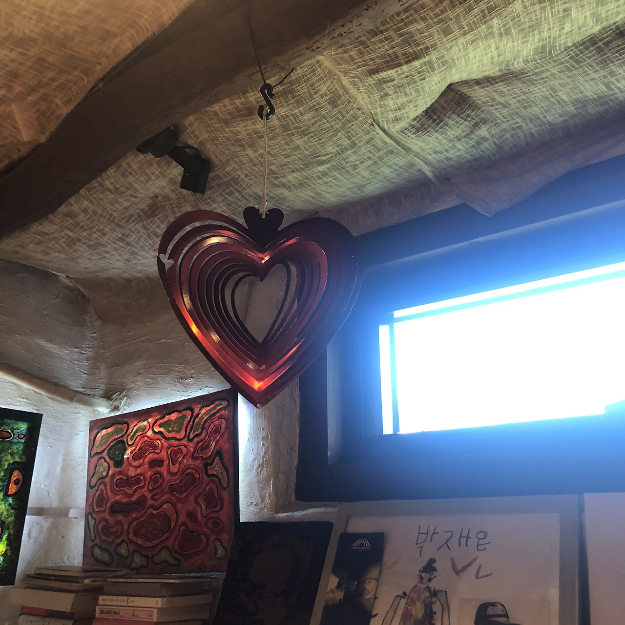 첫날 평대모살코지 마루에 누워 곳곳에 걸린 그림들을 봤다. 형태가 없고 느낌과 감정만 있는 추상화가 언뜻 보기에도 4점이 넘게 보였다. 왜인지 모두 언니가 직접 그렸을 것 같다는 생각이 들어 물었더니 맞다고 했다. 방 안에 들어가면 더 많은 그림들이 있었고 화장실 곳곳에도 크고 작은 그림들이 놓여 있었다. 언니가 모살코지와 어울리는 그림들을 그린 건지 모살코지가 그림들에 어울리게 변한 건지 알 수 없을 정도로 그 그림들은 모두 언니를 닮아 있었다. 그래서인지 집과 그림과 언니가 참 잘 어울렸다. 집을 봐도 언니 같고, 언니를 봐도 집 같고, 그림을 봐도 언니 같을 정도였다. 실제로 100년 이상된 모살코지의 곳곳을 언니가 직접 손보고 고치고 꾸몄으니 모살코지가 언니를 닮아갔다는 표현도 맞을 것 같다.