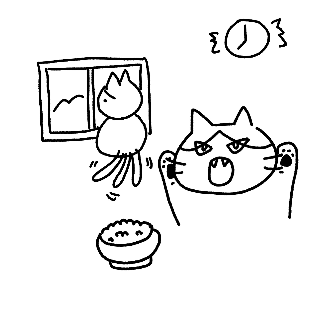그렇게 제리는 날 깨우면 애착 담요로 가 꾹쭙이를 하고, 밥을 먹는다. 밥을 먹기 전에도 와아아아앙!! 을 한다. 나 밥 먹는다!라고 알리는 걸까. 그러면 난 그래그래, 제리 밥 많이 먹어라고 답해준다. 제리는 우오아앙하는 대답을 하며 사료를 한입 가득 담는다. 그 모습이 너무 귀여워 난 여전히 비몽사몽 한 상태로 바라보다 서둘러 출근 준비를 한다. 밥을 다 먹고 나면, 제리는 다시 우와아아앙! 하고 운다. 밥을 먹고 더 커진 목소리로 캣타워 위에 올라가 날 부른다. 이때는 창문을 열라는 뜻이다. 아침 식사를 마치고 나면 밤 사이에 별일 없었는지 밖의 상황도 확인해야 한다. 그러면 난 또 하던 일을 멈추고 가서 창문을 연다. 차가운 아침 공기가 휙 들어오지만, 제리는 투명창으로 보기보단 열어주는 것을 좋아한다. 비둘기나 까치가 날아다닐 때면 트릴링도 보여주고, 나 역시 제리가 신나 하는 모습에 신나서 또 그것을 바라본다. 실컷 보고 나면 또 우와아아아아앙! 하고 운다. 아직 끝나지 않았다. 제리는 아침엔 미지근한 물 마시는 것을 좋아해 늘 물그릇에 뜨거운 물을 조금 부어준다. 쪼르륵 소리를 내며 떨어지는 물줄기를 바라보다 멈추자 이내 물을 먹는다. 챱챱챱챱챱챱챱… 오늘따라 텐션 높은 제리에 비해 피로가 쌓여 행동이 느린 집사는 제리가 요구하기 전에 물을 붓는 것을 실패했다. 후, 고양이 아침 루틴이 생각보다 힘들다는 생각을 했다.