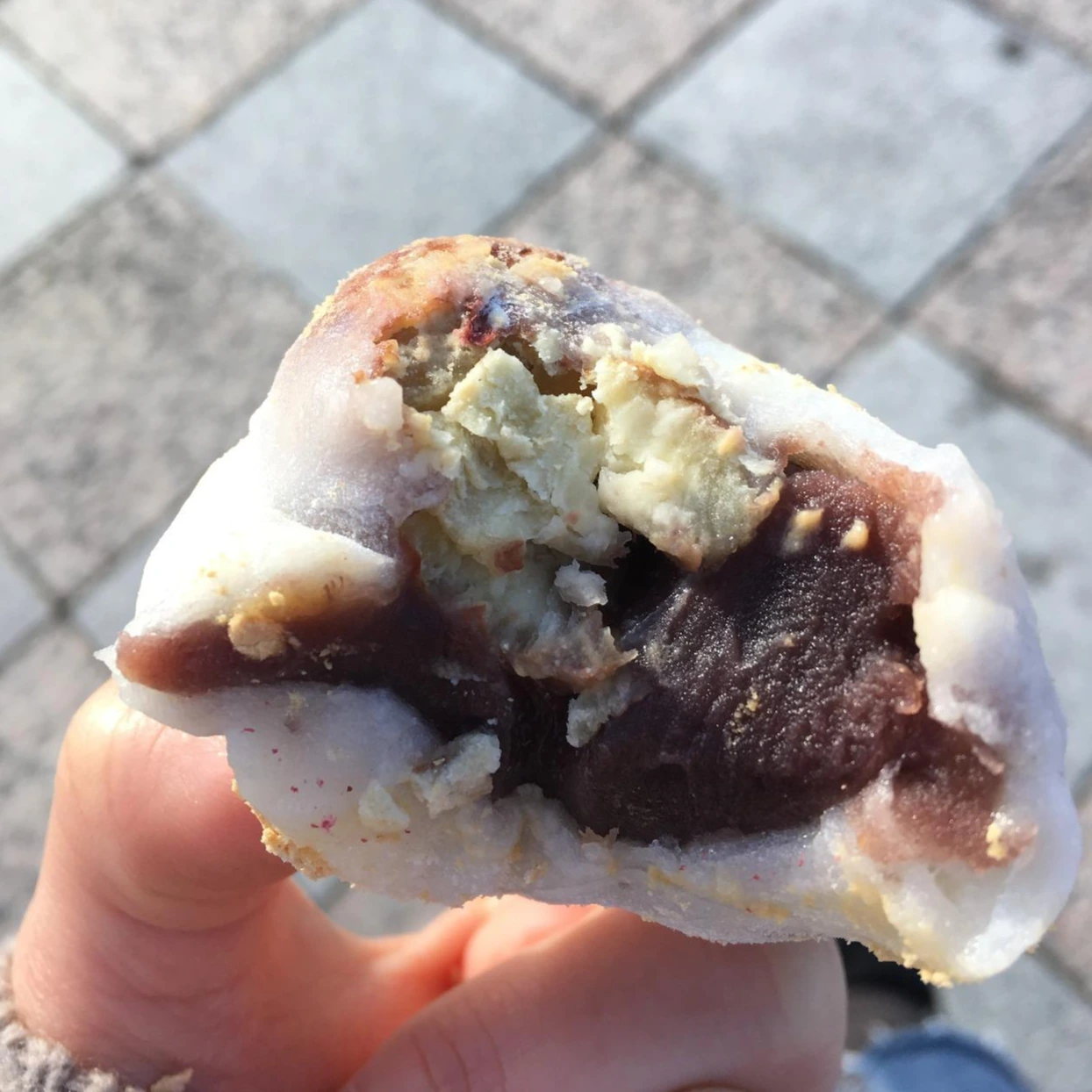 앞서 간 디저트 카페 포 스팅을 본 블로그에서 이 찹쌀떡 집을 보고 여기는 꼭 와야겠다 생각을 했다. 도착했을 땐 역시 지역 맛집답게 많은 현지인들이 줄을 서서 기다리고 있었다. 줄을 서고 기다리다 주문을 하고 포장과 계산을 한다. 제일 유명한 건 콩이 박혀있는 찹쌀떡이니 이건 꼭 먹어야 하고, 난 그 찹쌀떡을 포함에 가을 시즌에 나온 밤이 들어있는 찹쌀떡과 녹색의 찹쌀떡을 구매했다. 떡을 구매하고 나니 바람이 조금 세졌다. 하지만 춥지는 않아서 카모 강에 가 떡을 먹기로 했다. 일본 편의점엔 녹차나 우롱차를 많이 판다. 우롱차를 하나 사고 벤치에 앉아 떡을 집어 먹었다. 떡 안엔 달달한 팥앙금이 가득 들어있었고 하나만 먹어도 배가 부를 정도의 무게를 가지고 있었다. 셋 중에 가장 맛있는 건 역시 콩이었다. 인기 있는 이유가 있구먼..! 콩을 싫어한다면 이해 못 할 맛이지만 콩이 들어간 음식은 은은한 단 맛과 고소함, 약간의 식감이 느껴져 너무 맛있다. 하나만 먹어도 배 부를 큰 찹쌀떡을 세 개를 홀랑 먹고 쌉싸름한 우롱차를 마시고 나니 행복 멀리 있지 않다는 생각을 했다. 강가에 앉아 찹쌀떡 먹는 것은 한국에서도 충분히 할 수 있는데 거기선 왜 좀처럼 그럴 마음의 여유가 나지 않는지 모르겠다.