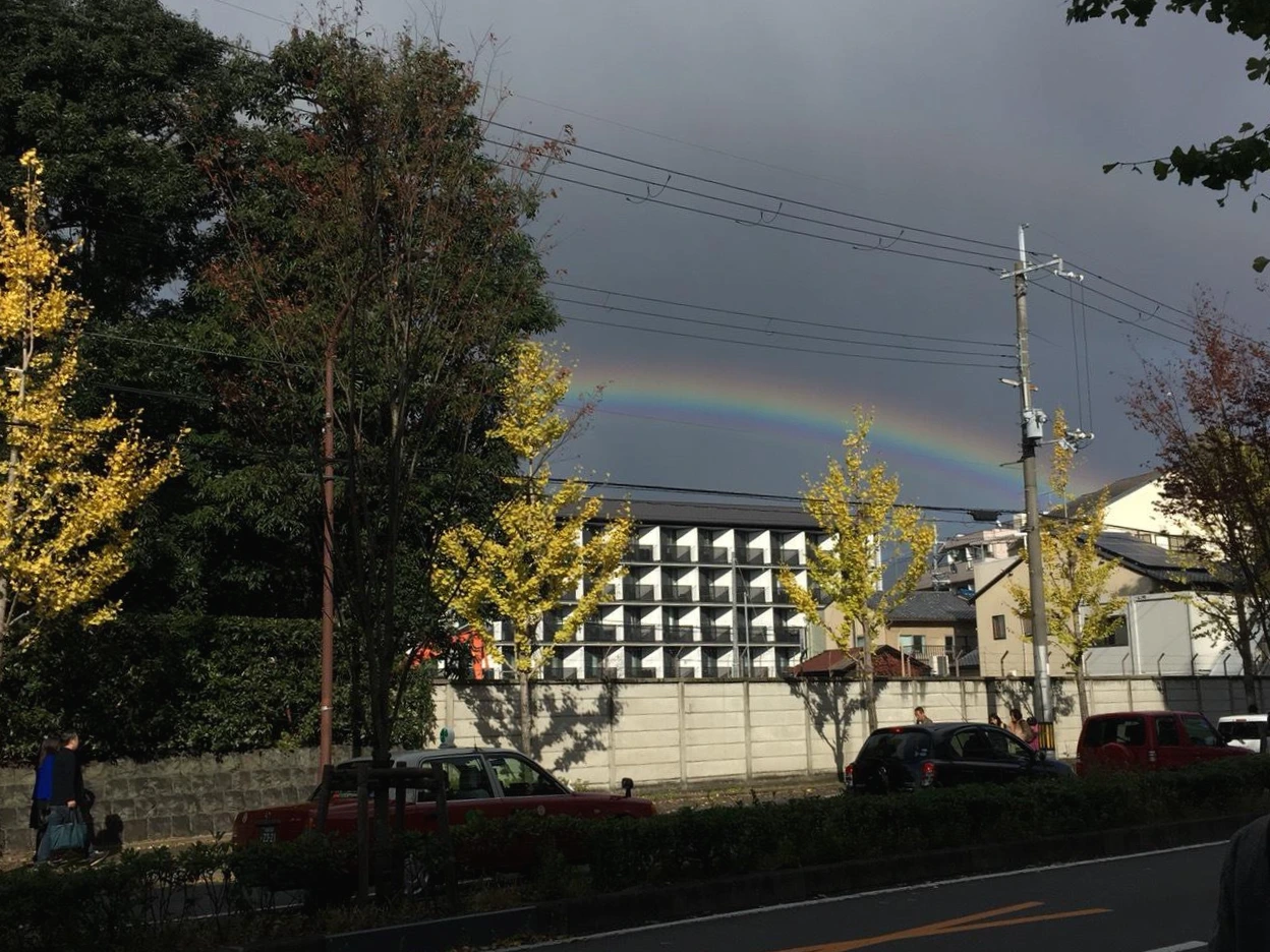 잠시 비가 내렸었나 보다. 자전거를 타고 여기저기 구경을 하고 있는데 한쪽에서 소란스러움이 들려왔다. 여자아이 두 명이 손가락으로 하늘을 가리키고 엄마로 보이는 두 명의 여성이 작게 환호하고 있었다. 나도 모르게 아이의 손가락을 따라 시선을 옮기니 흐려진 하늘에 아주 선명한 무지개가 떠 있었다. 그것도 꽤 길게.