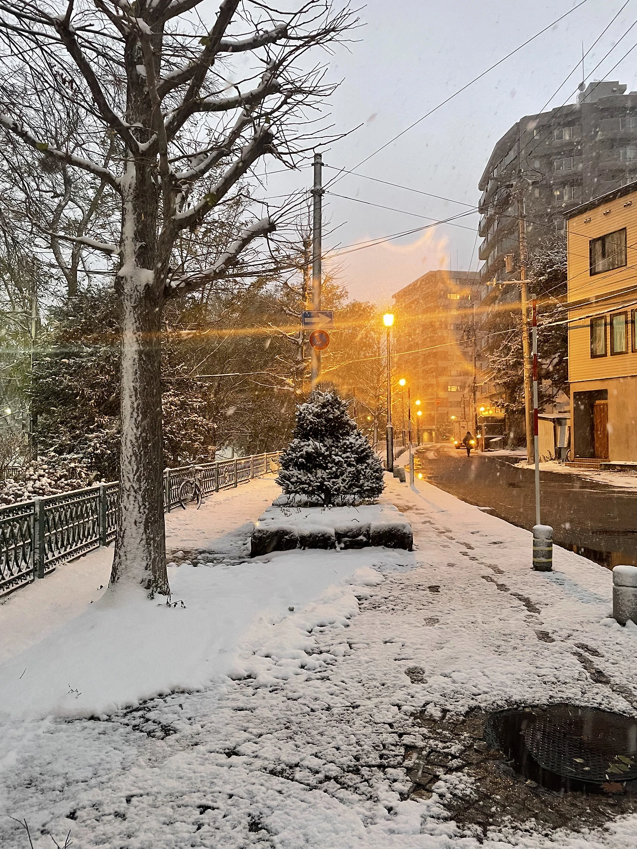 아직 나는 열이 푹푹 나는 상태이다. 그래서 추운지도 모른다. 맨손으로 쌓인 눈을 만져보다 뭔가 일본에서 내리는 눈은 다른 감촉을 가진 것 같다는 생각을 한다. 포근한 느낌. 눈이 부드럽고 포근하다. 그래서 이렇게 볼록하게 쌓이는 걸까, 하며 뭉쳐보지만 잘 뭉쳐지지는 않는다. 호텔 근처의 공원에 다시 한번 들리기로 했다. 호텔 가는 길을 지나쳐 공원 길을 걷는다. 사람들이 많이 다닌 곳은 꽤 질척거렸다. 군데군데 녹은 눈이 얼음이 된 곳도 있었으니 아랑곳 않고 자전거를 타고 다니는 사람을 본다. 강한 사람. 저 멀리 산책 나온 강아지와 아빠와 아들이 보인다. 강아지와 아들은 신이 났고, 그 둘을 바라보는 아빠도 조금 들뜬 모습이다. 눈이 오면 더 신이 나게 산책을 하는구나.