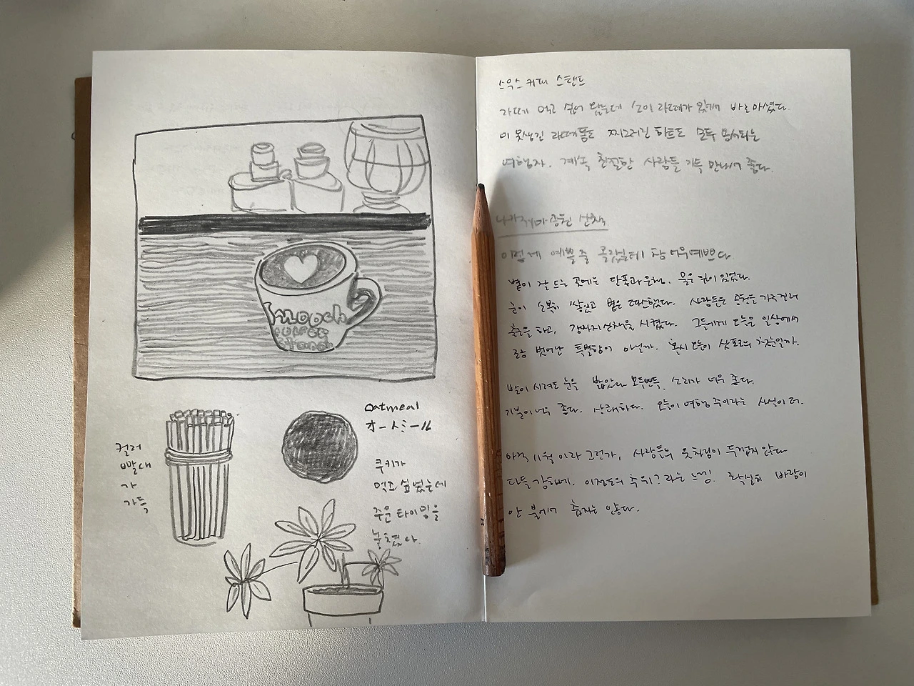 문을 열고 들어간 곳엔, 밝게 인사하는 한 직원이 있다. 부드럽고 선한 외모로 밝게 인사를 해주니 기분이 좋다. 나도 인사를 한다. 낯선 언어로 수줍게. 오늘 처음으로 나누는 대화. 아침마다 늘 커피를 내려 두유에 섞어 마신다. 이 커피를 마시지 않으면 하루를 시작할 수 없는데, 몇 년째 이어온 습관이다. 삿포로에 와서도 나의 작은 습관을 하나 지킨다. 오늘 공기가 맑고 하늘이 더 예쁘게 느껴지는 것은 어제 눈이 와서 그런 걸까. 나카지마 공원과 카페 사이에 도로로 많은 차들이 달리고 많은 사람들이 지나간다. 모두가 바쁜 아침이다. 하트가 그려진 따뜻한 라테를 받았다. 거품이 꽤 둥실. 뭉게구름을 닮은 하트 거품이 있다. 삿포로로 오는 하늘에서 본 구름이 생각난다. 유난히 크고 뚱뚱한 뭉게구름들. 구름을 베어 물면 어떤 기분일까, 생각하며 작은 하트 구름을 삼켰다.