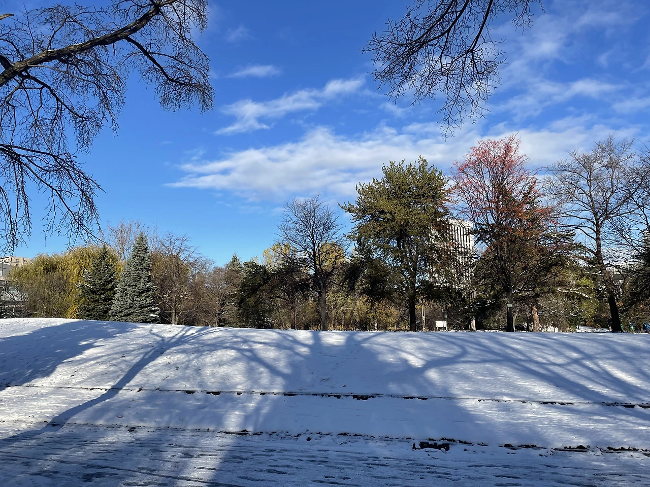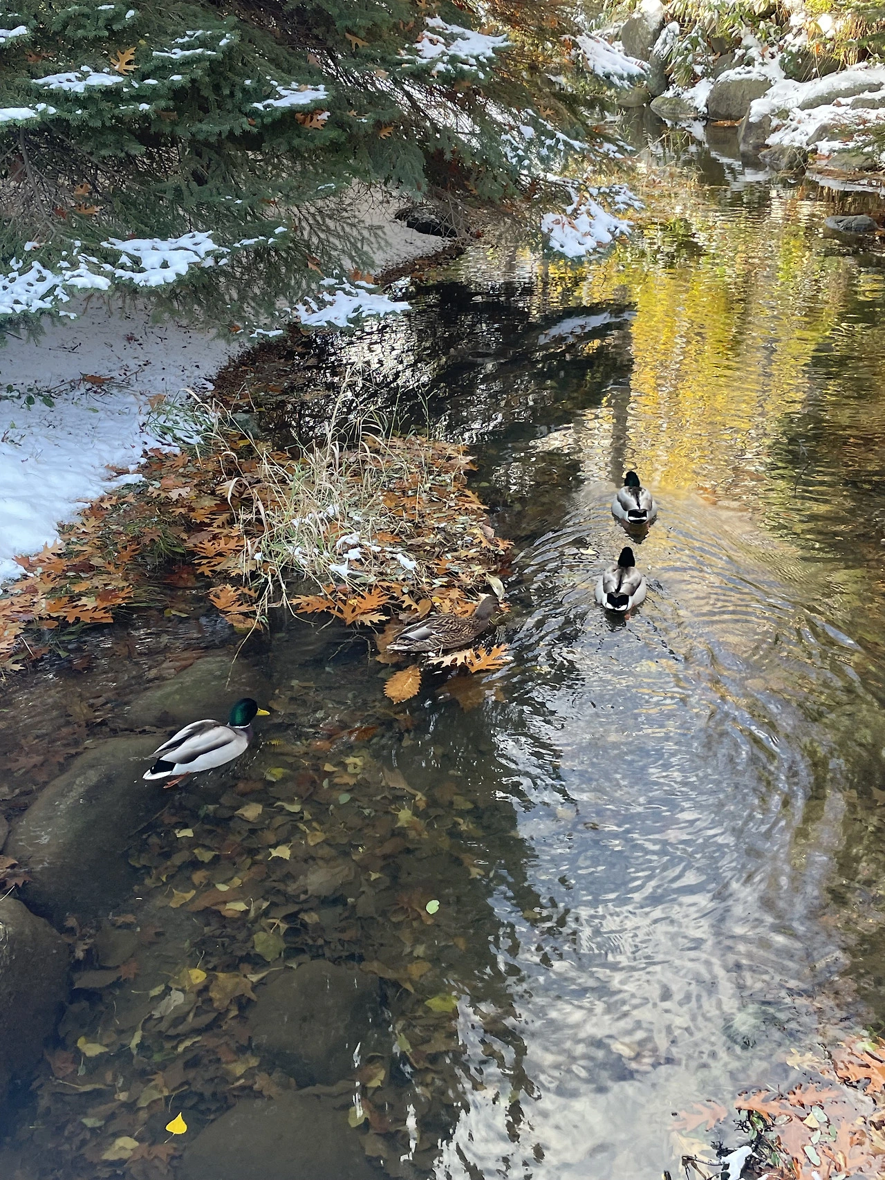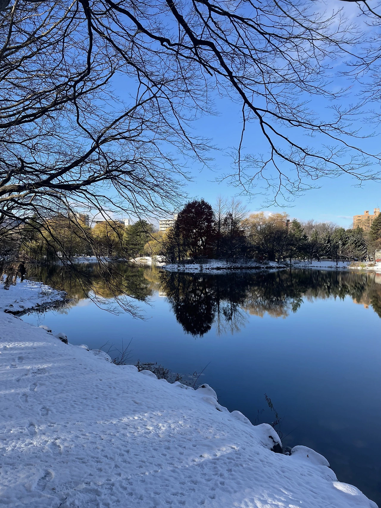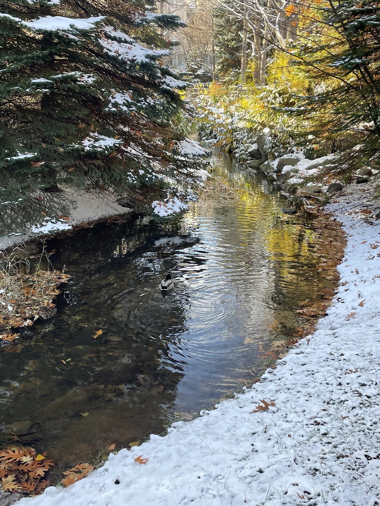 11월의 삿포로는 아직 가을의 색이 남아있다. 나무 가지엔 노란 잎, 갈색 잎, 붉은 잎이 달려있다. 앙상한 가지의 눈 내리는 겨울만 만났는데, 늦가을에 만나는 겨울이 참 신기하다. 무슨 기척이 보여 들여다보니 오리가 눈을 파고 있다. 아니, 거기 뭐가 있는데. 푸드덕 고개를 좌우로 흔들더니 뒤뚱뒤뚱 걸어간다. 살금살금 뒤를 밟아 따라가 보니 작은 개울이 나온다. 오리 입수. 반대편에선 몇 마리의 오리들이 유유자적 아침 헤엄을 하며 다가온다. 여기에 오리가 살고 있을 줄이야.