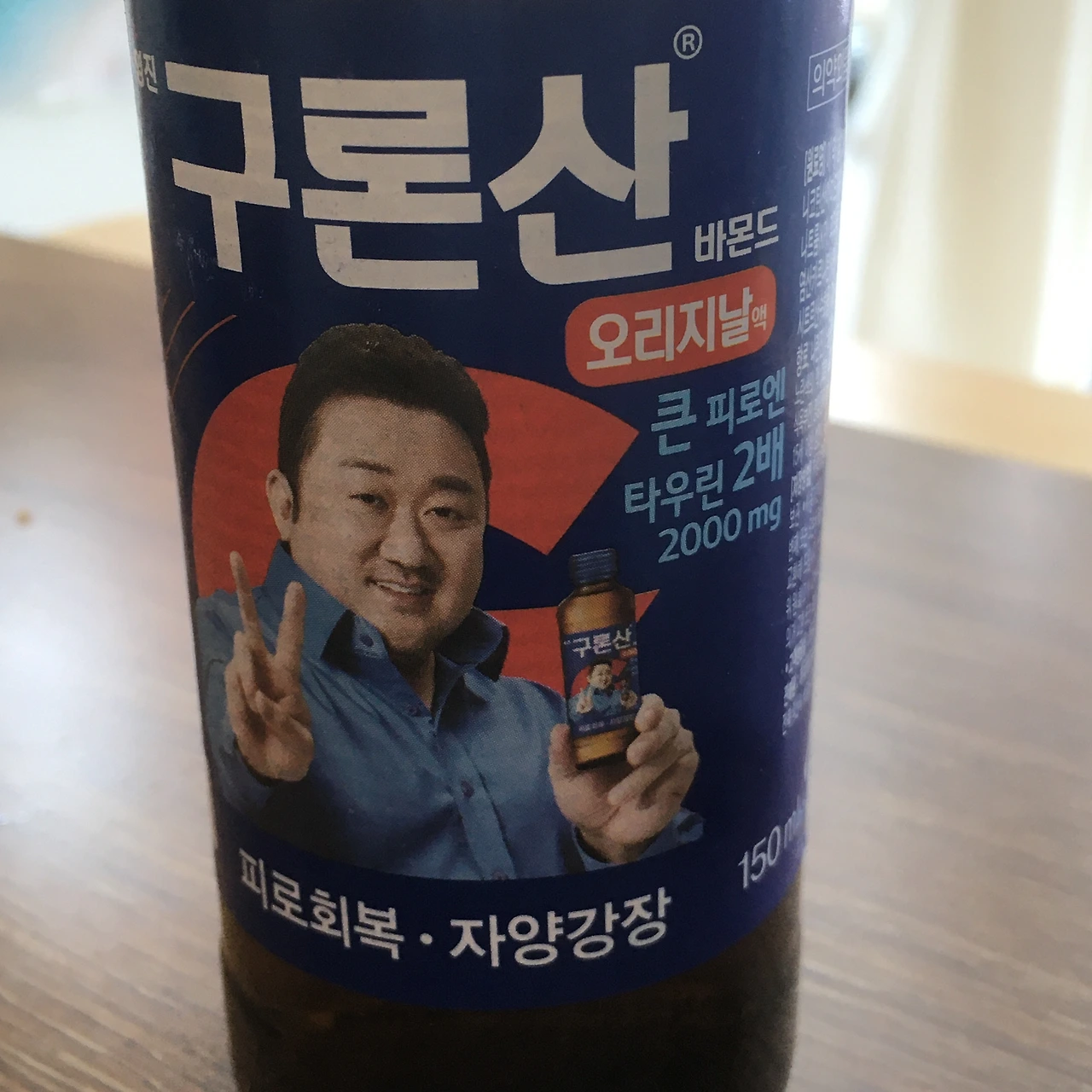 "저는 드릴 것이 이것밖에 없어서.." 하며 직원 분은 조금 수줍게 병음료를 건넸다. 피로해소, 자양강장이 쓰여있는 구론산이었다.
