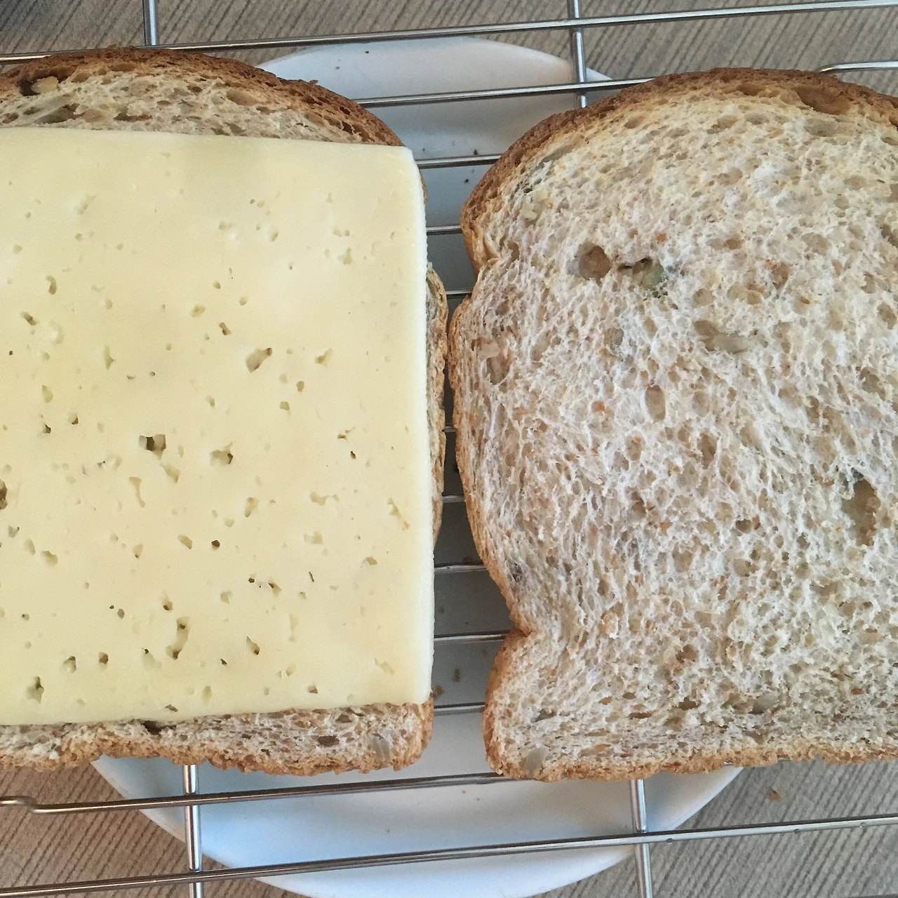 비빔면에 넣으려 했던 양배추를 얇게 채 썰어 전자레인지에 1-2분 정도 데운다. 그러면 양배추의 수분이 빠져나오는데, 물을 빼내고 냉장고에 차가워지게 두면 오독오독한 식감이 된다. 얼마 전에 산 초록 사과도 비슷한 굵기로 썰어 함께 샐러드로 만들었다. 마요네즈와 홀그레인 머스터드, 꿀, 소금, 후추, 레몬즙까지 넣어 새콤한 소스를 만들어 넣었다. 견과류가 듬뿍 들어있는 통밀 식빵을 오븐에 구웠다. 한쪽엔 치즈를 올렸다. 왠지 치즈는 흐린 날 더 먹고 싶다. 바삭해진 식빵에 양배추 사과 샐러드를 듬뿍 얹으면 완성. 여름엔 누가 뭐래도 역시 간단한 샌드위치가 최고다.