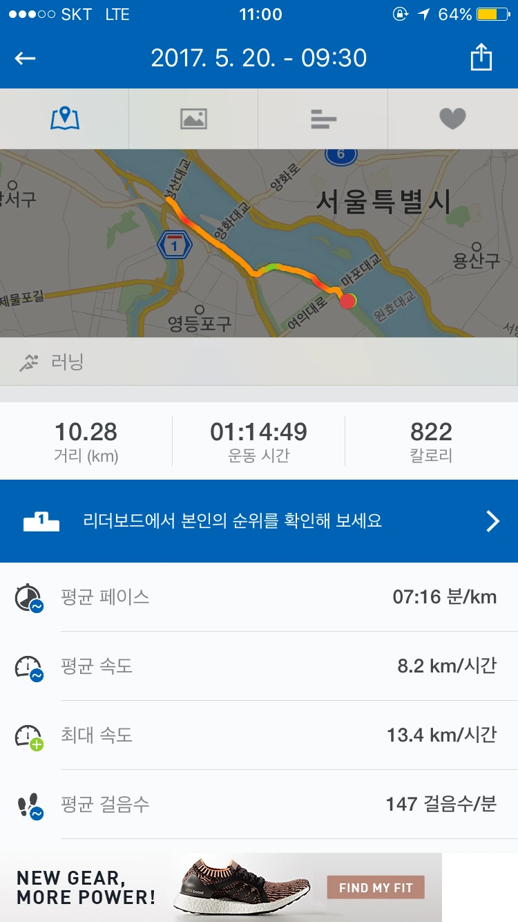 당연하다. 심지어 뛰다가 배가 너무 아파 화장실에 들렸으니,,, 기록은 나의 화장실 간 시간을 기다려주지 않았다.