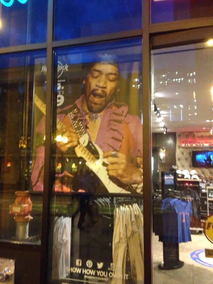 옷가게에 걸려있는 지미 핸드릭스의 모습