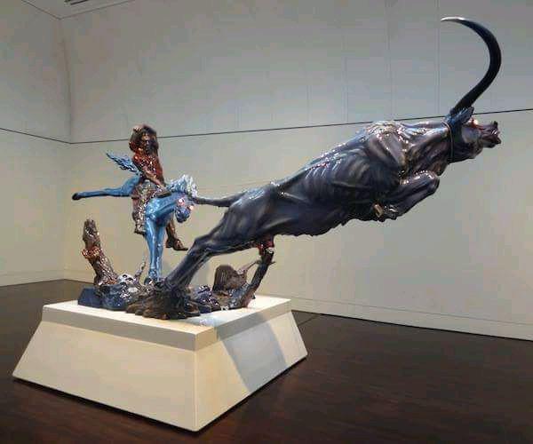 간신히 작품에서 눈을 떼고 벽에 붙은 설명을 읽는다. 작가는 멕시코 혈통의 루이스 히메네즈(Luis Jimenez). 1940년에 텍사스주 엘파소에서 태어나 2006년에 세상을 떠났다. 미술관의 큐레이터는 히메네즈를 이렇게 설명한다. 미국의 서부개척 역사 경험을 스스로 체험의 렌즈를 통해 형상화시킨 조각가 겸 화가라고.