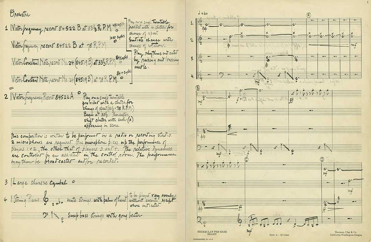 존 케이지의 예술 세계를 단적으로 보여주는 <4분 33초>를 통해 그는 ‘소리’를 매개로 하는 음악의 정의를 다시 쓰게 했다. 기존의 ‘화음’ 혹은 ‘불협화음’이라는 차원을 뛰어넘어 ‘음악으로서의 소리’ 혹은 ‘그냥 소리’라는 새로운 구도를 제시했다. 존 케이지는 피아노의 줄에 여러 나무 조각이나, 쇳조각 같은 것을 닿게 하여 피아노가 소리를 낼때마다 우연한 울림들이 만들어지도록 하거나, 타자기 소리 같은 각종 생활 소음을 마이크를 통해 여과 없이 들려주는 것을 그의 음악 소재로 삼았다. 그는 동전을 던져 작곡의 방향을 정하기까지 했다.