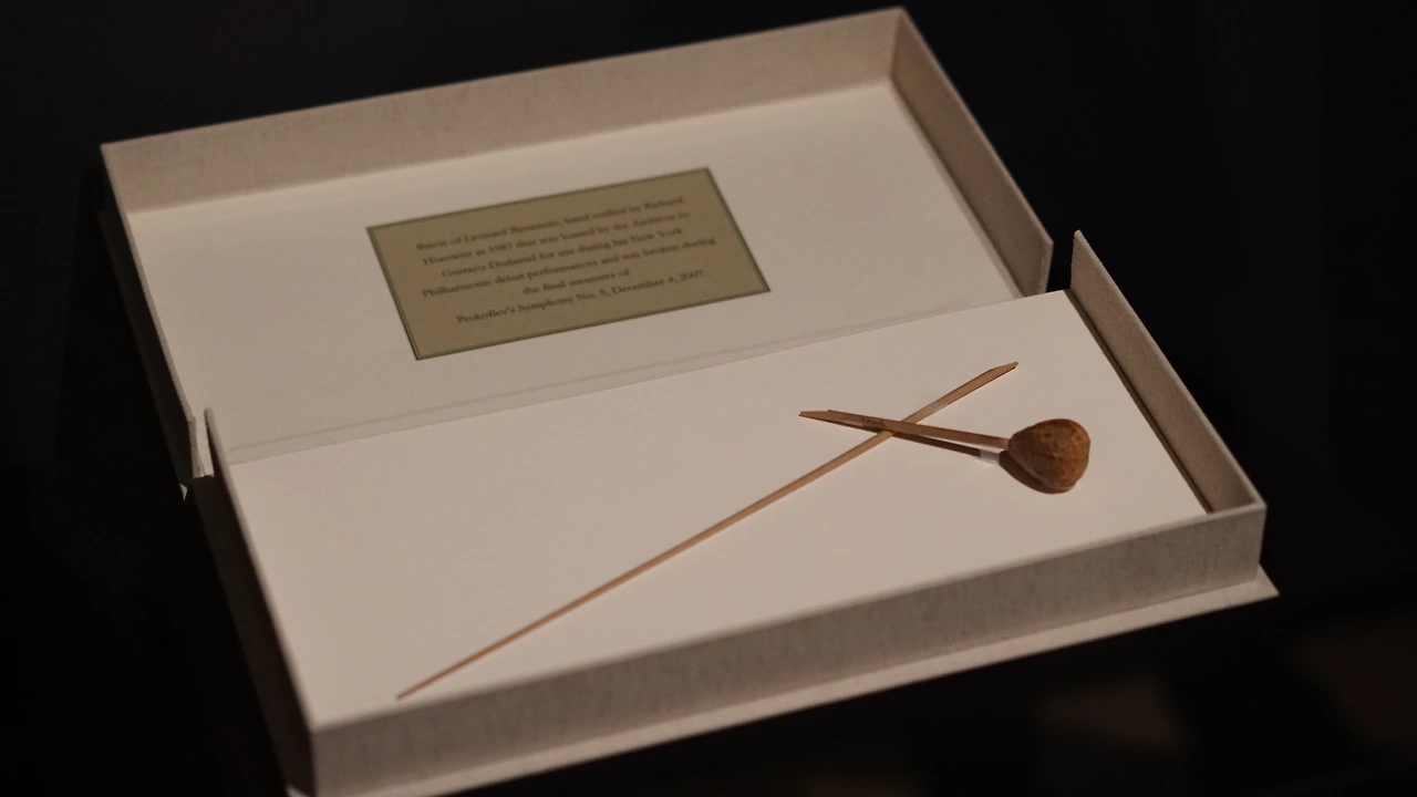 전시품 가운데 특히 눈길을 끌었던 한 가지가 있었는데, 바로 두 동강 난 지휘봉이었다. 번스타인은 자신이 사용하는 바통을 늘 ‘리처드 호로비츠(Richard Horowitz)’에게 부탁했다. 그는 이름 있는 지휘봉 제작가였지만, 실은 메트 오페라 오케스트라의 팀파니 종신 수석으로 66년 동안 활동한 최장수 단원이기도 했다. 이 부러진 바통은 원래 1987년까지 번스타인이 소유했던 것이었는데, 2007년도 구스타보 두다멜의 역사적인 뉴욕 필하모닉 데뷔 공연에도 사용되었다. 그러나 리허설 도중 프로코피에프 교향곡 5번의 마지막 마디에서 두다멜이 이 바통을 부러뜨리고 말았다. 역사적 연주에 역사적 해프닝이 중첩되며 또 다른 의미가 탄생된다. 뉴욕 필하모닉은 이 바통을 10년 넘게 보관하고 있다.
