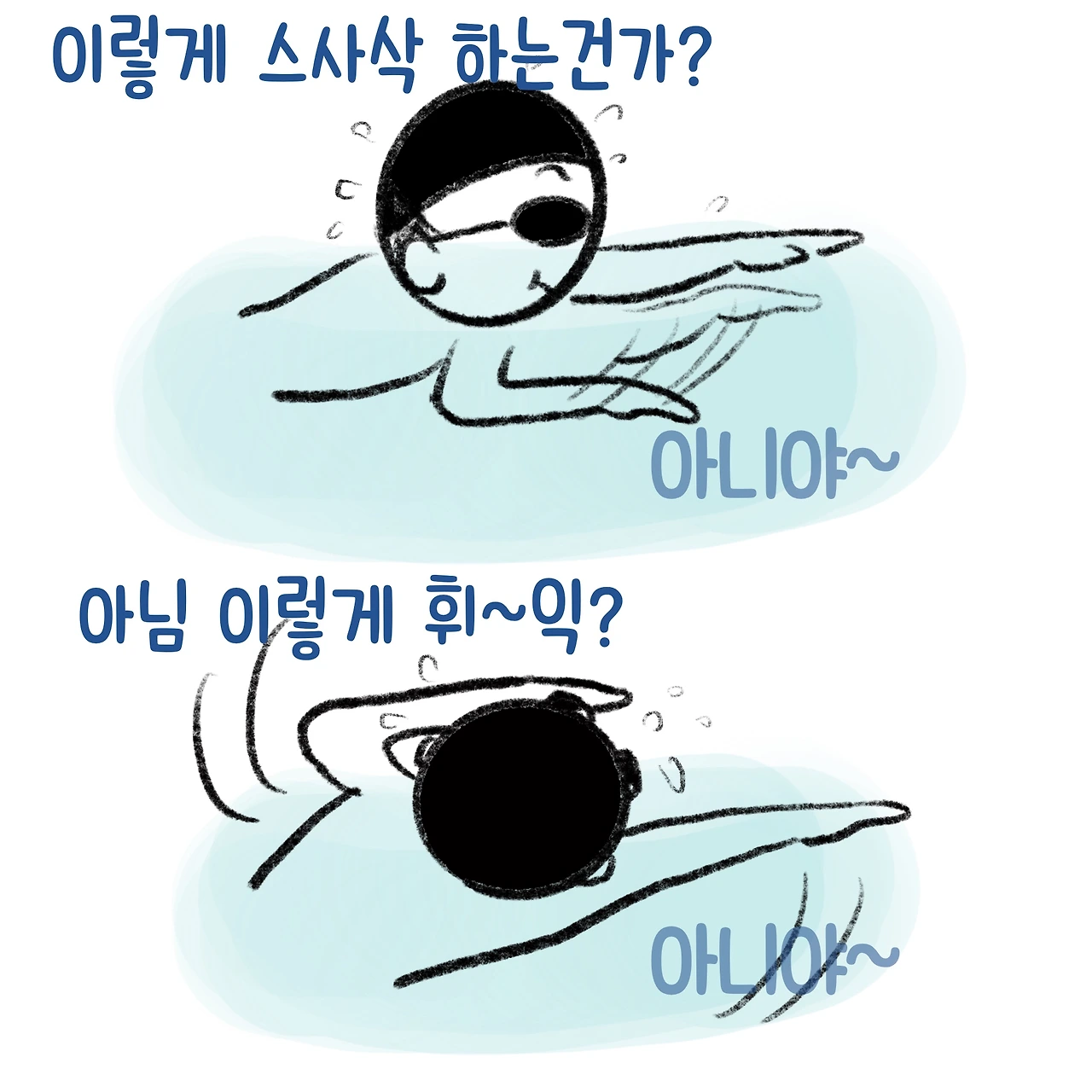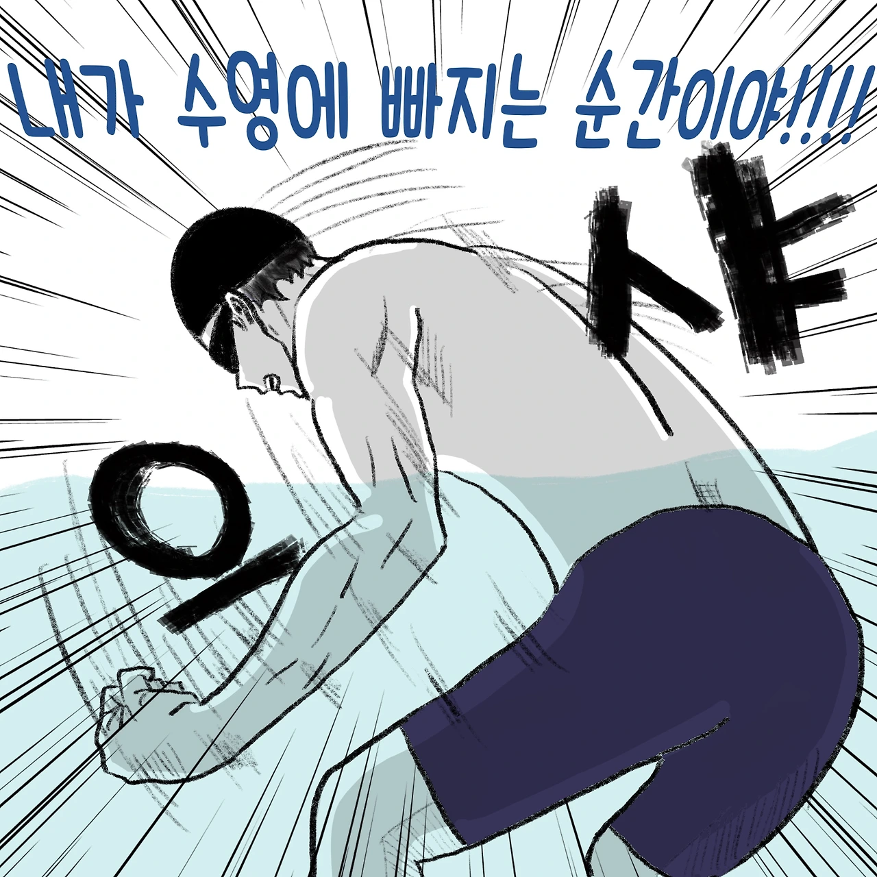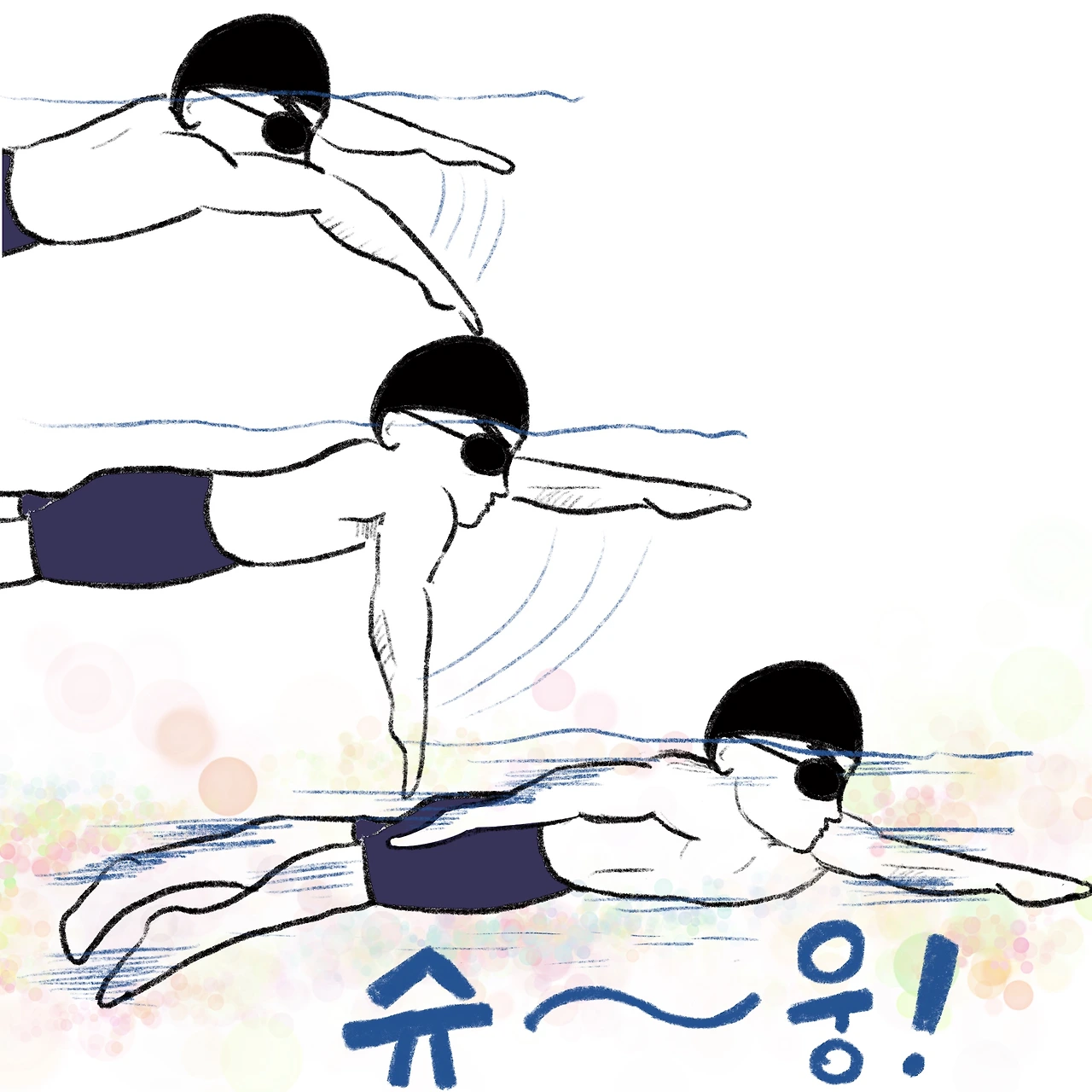 배구 만화 ‘하이큐’라는 만화 속 캐릭터들 중에 츠키시마라는 인물이 있는데 심드렁한 성격이 나랑 비슷하다. 그런 츠키시마가 그냥 취미 활동 정도로 생각하고 시작한 배구에 빠져드는 순간이 있었는데 나는 그 장면을 가장 좋아한다. 상대편 에이스의 무지막지한 스파이크를 정확히 블로킹하고 그 한 번의 손 맛에 배구에 빠져드는 장면은 나에게 두근거리는 희열을 느끼게 했다. 나 또한 수영에 빠져드는 순간이 있었다. 자유수영 때 얼떨결에 팔을 휘둘러 봤는데 우연히 그 한 번의 스트로크가 제대로 먹혀 물살을 속도감 있게 가르는 것이었다. 비록 긴 거리는 아니었을지언정 그 당시 온몸이 기억하는 속도감은 츠키시마의 짜릿한 블로킹과 같은 희열을 나에게 심어주었다. 그 순간 , 그 한 번의 스트로크가 나를 수영에 빠지게 한 것이다.