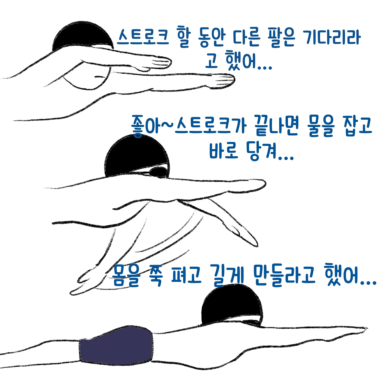 4. lovely swimmer: 수영을 단계적으로 연습해서 습득할 수 있도록 친절하게 제시되어 있음. 특히 배영을 배울 때 많은 도움이 됨.
