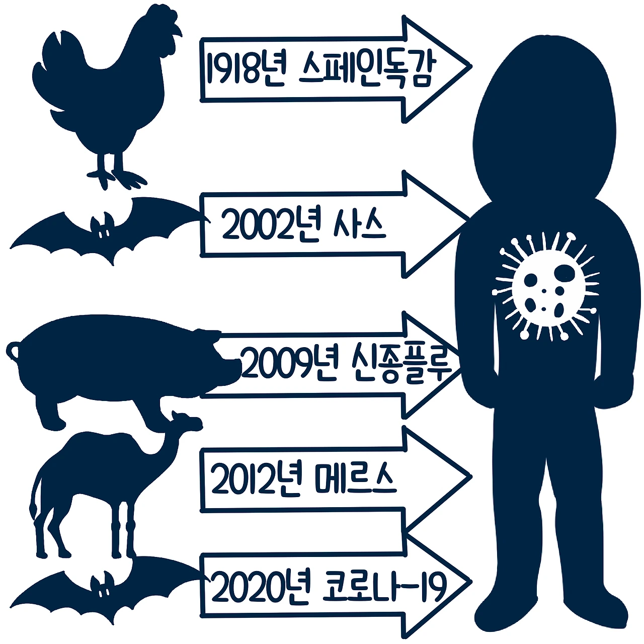 그것도 농사와 관련 있지. 농사를 지으면서 가축을 길렀다고 했잖아. 대게의 전염병들은 동물에서 옮아 오는 경우가 많거든. 예를 들어 지금의 코로나-19도 박쥐에서 옮아 왔다고 해.