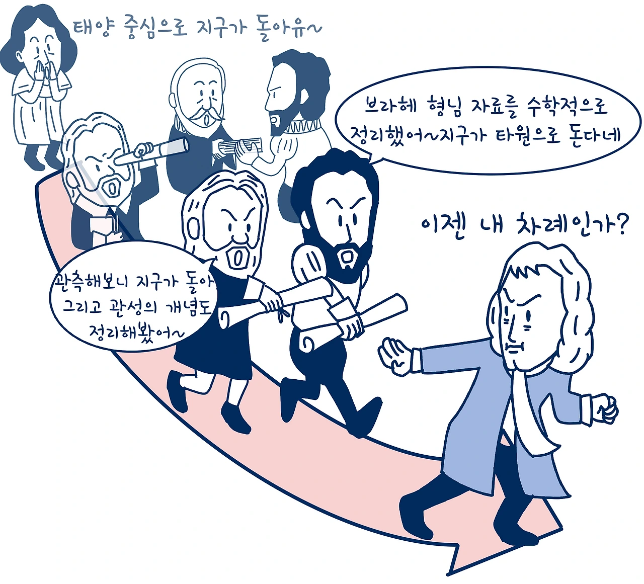 정리해보자면 코페르니쿠스의 지동설이 갈릴레오 갈릴레이, 케플러에게 영향을 끼쳤고 브라헤의 다양한 관측자료는 케플러의 법칙을 탄생하게 했지. 이 모든 것을 이어받은 뉴턴은 중력을 비롯해 다양한 과학적 발견을 수학적으로 정리를 한 거야.