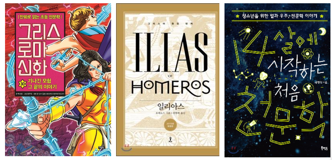 제 큰 아이는 그리스 로마신화 만화를 정말 좋아했는데, 이는 별과 별자리에 관심이 옮겨가게 되었고 이후 천문학과 역사에 관심을 가지며 관심주제와 읽기의 영역도 확대되었습니다. 지금도 여전히 학습만화를 보지만, 진짜 그리스 로마 신화가 궁금해 ‘일리아스’를 찾아 읽고 10대를 위해 쉽게 쓰여진 천체물리학책을 도전하여 읽고 있습니다. 정말 놀라운 사실은 그리스 로마 신화 만화책을 정말 많이 읽어서 신들과 님프 영웅들의 이름을 거의 다 외우고 있어서 ‘일리아스’가 많이 어렵지 않다고 합니다. ‘일리아스’는 저도 같이 읽다 진작 포기했는데 말입니다. 엄마, 아빠도 포기한 그 책을 혼자 다 읽어 냈다는 자부심이 얼마나 대단한 지 모릅니다. 그때는 아주 양껏 칭찬만 해주면 됩니다.