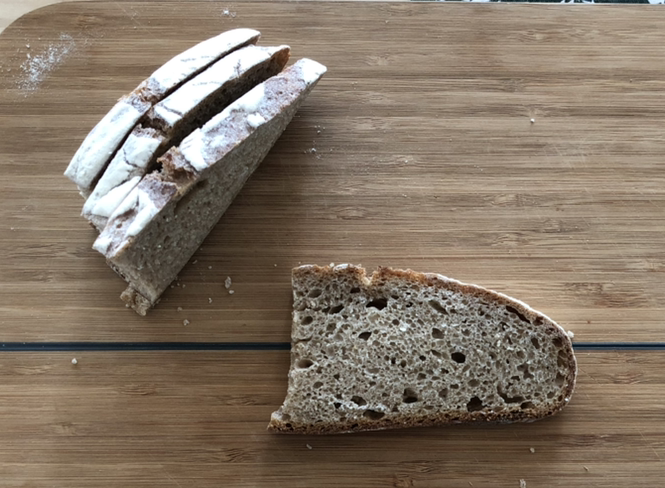 1. 사워도우 호밀 빵을 한 조각 준비한다 (손바닥 반 사이즈)