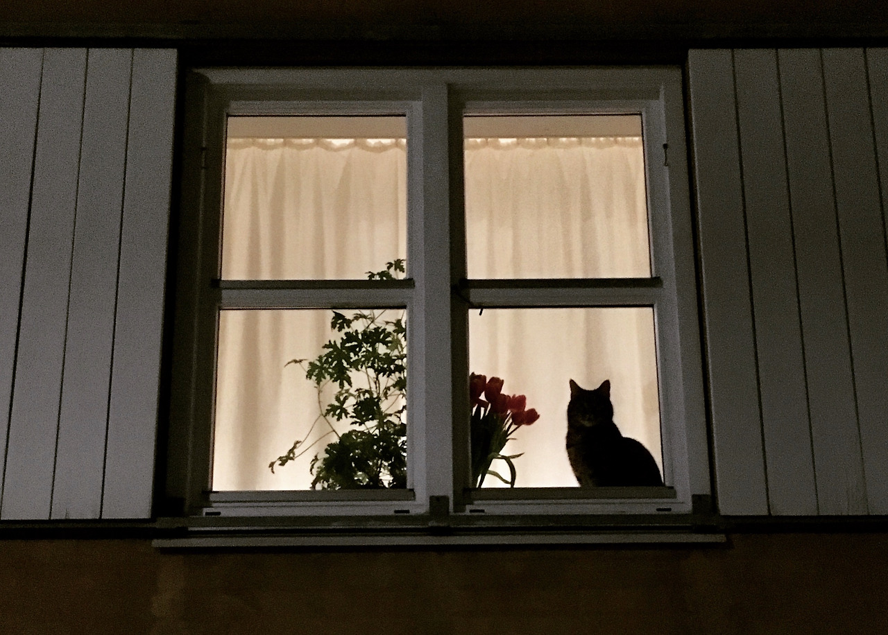 4. 밤거리를 쏘다니다 본 어느 집 창가에 앉아있던 고양이. 빨간 튤립과 고양이라니 정말 그림 같은 조합이었다. 동네를 걷다 보면 종종 창문 앞에 나와있는 고양이를 발견하는 행운을 만나게 된다.