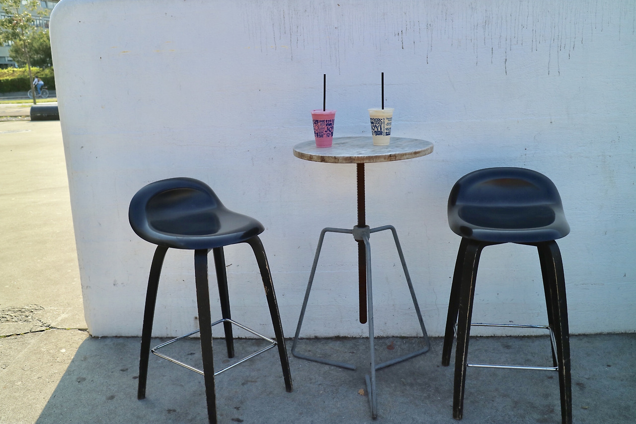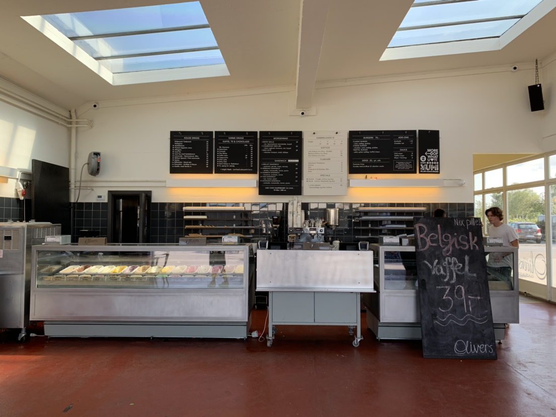 카페에서 가장 추천하는 메뉴는 오가닉 아이스크림이다. 뿐만 아니라 아이스크림을 이용한 밀크쉐이크와 간단한 샌드위치 버거도 있다. 장소는 주유소 옆 공간도 있고 조금만 걸어가서 해안도로를 바라보면서 즐길 수 있다.