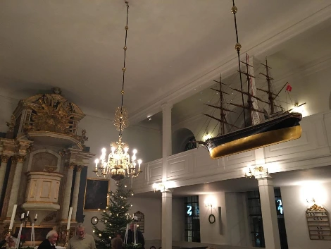덴마크 교회의 천장에 달려있는 배 모형 Photo by. DK sisters friend