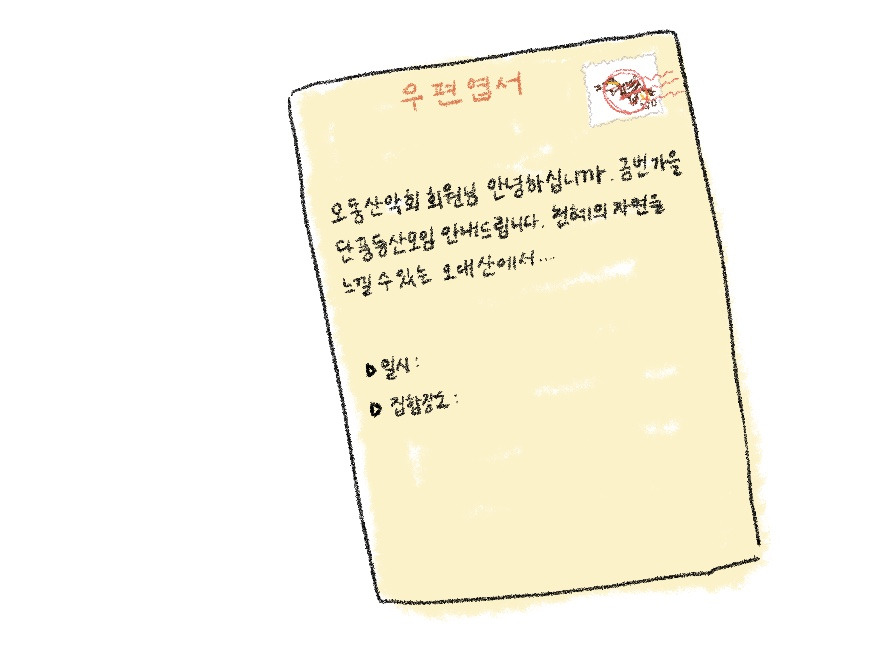지금으로 치면 "인싸" 였던 할머니는 동네 경로당, 산악회에 매일같이 출석했었습니다. 지금은 보기 힘든 손바닥만 한 노오란 엽서에 동심 산악회 정기모임, 이라는 글자가 빼곡히 쓰여있으면 할머니께 가져다 드렸었죠.