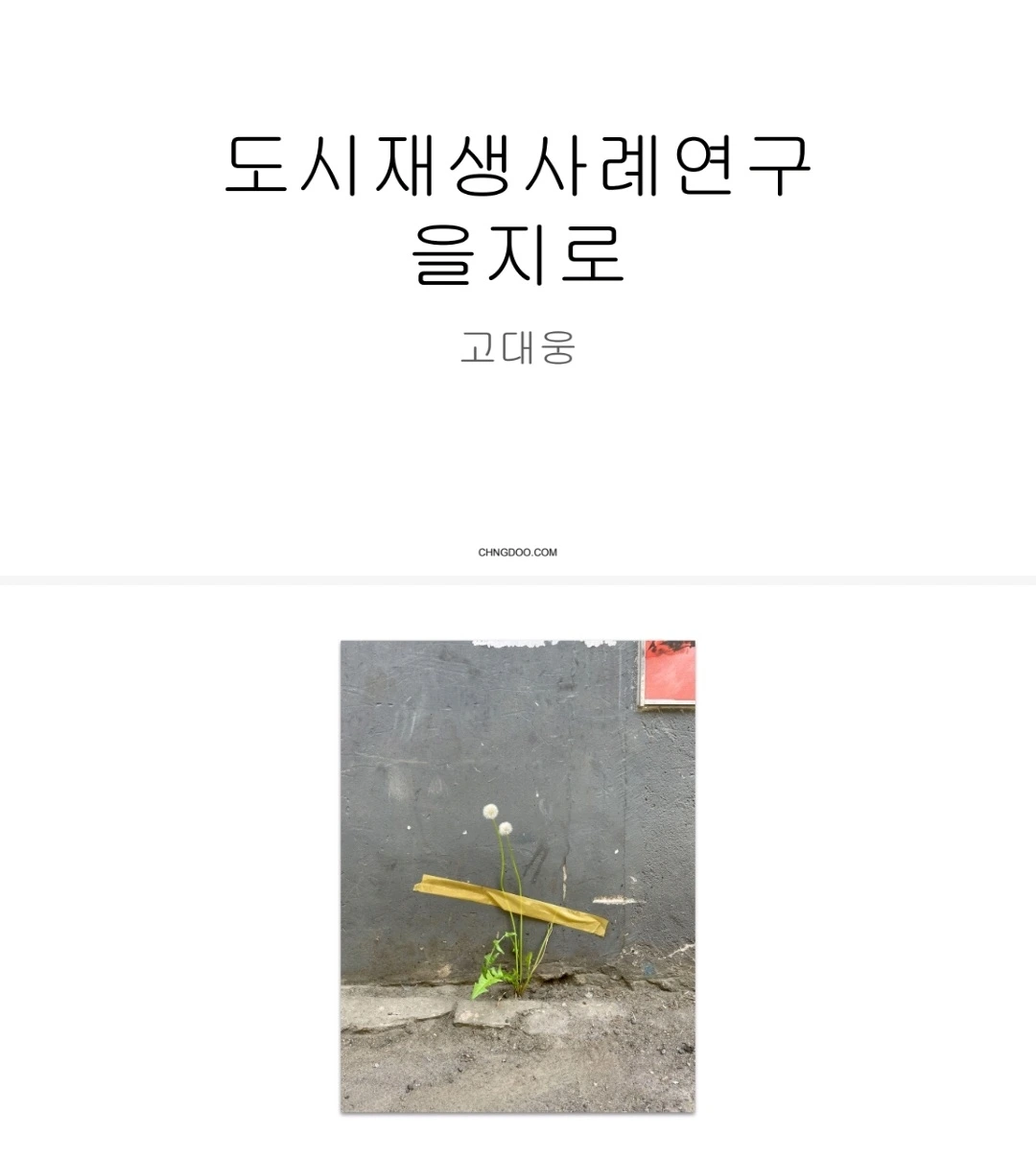 그는 틈 사이에 피어난 민들레가 꺾이지 않게 테이프로 붙여준 모습이 을지로 같다고 말했다. 을지로라는 공간은 그에게 어떤 의미였을까. 예술가들이 자신만의 꽃을 피울 수 있게 주거의 안정화라는 테이프를 제공한 것이라고 여겼을까. 혹은 예술이라는 것은 어떤 곳에서든 이어지고 전달되어야 하는 것이라고 생각했을까. 마치 꽃을 피우고 씨를 퍼트리는 일처럼 말이다.
