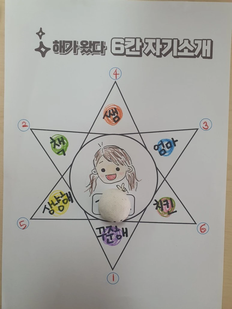 교실에서 '나의 해'를 6개의 단어로 표현하고 우선 순위를 매겨보았다. 나를 나타내는 여섯단어인 셈이다. 내가 가진 해는 꾸준함이 가장 높은 순위에 올랐는데, 이 마음을 잘 모아서 다른이에게 나누어줄 수 있을 만큼 꾸준한 사람이 되고 싶다. 아이들의 해는 정말 다양했다. 축구, 돈, 가족도 있었고 당연히 게임도 있었으며 뉴진스도 있었다. 각자가 가진 해를 서로에게 나누어주면 정말 다양한 빛이 만들어질 것 같아서 기대된다.