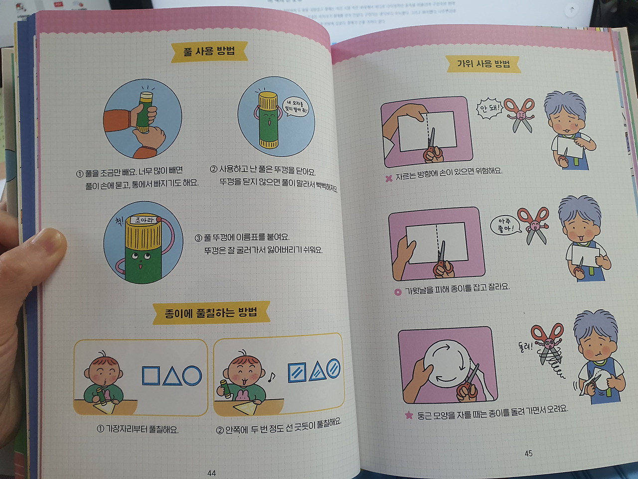 '풀 바르기'라는 행동을 완성시키기 위해선, 거짓말 살짝 보태서 100번쯤은 이야기해야 하는 것 같다. 그럼에도 아이들은 "선생님 풀 뚜껑 없어졌어요!" "선생님 풀 때문에 종이가 찢어졌어요!" "선생님, 풀이 삐져나와서 손에 달라붙어요! 손 씻고 싶어요!" 하며 울상이 된다. 마음속으로는 '아까 쌤이 말할 때 뭐 하고 있었어!'라는 말이 턱 끝까지 차오르지만 꿀꺽 삼키고 가르친다. 내가 길을 잘못 찾아가도 '잘못 진입하셨습니다. 우회하세요.' '경로를 이탈하였습니다. 경로를 재검색합니다.'라며 몇 번이고 친절하게 알려주는 내비게이션처럼 (물론 내비게이션보다는 더 다정해야겠다. 화내지 않는 것도 어려운데, 친절하고 다정하게라니! 역시 쉽지 않다).