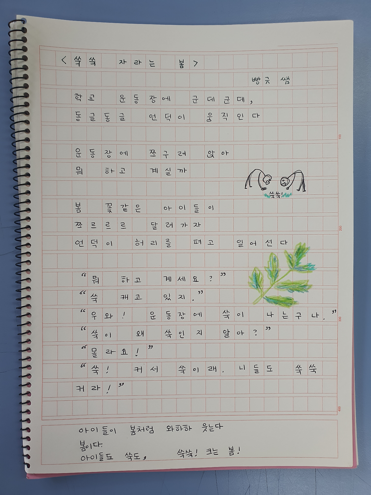 “우와! 운동장에 쑥이 나는구나!”