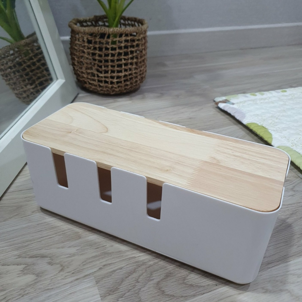 보기 싫은 전선들을 정리해주는 우드 멀티탭 박스와 현관문에 붙인 감성 글귀도 꽤나 마음에 든다.