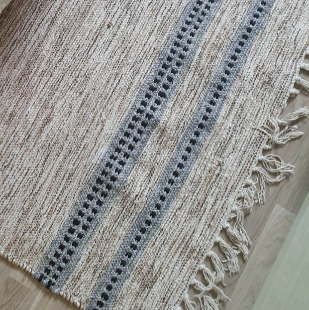 러그는 일전에 썼던 PVC 러그가 세탁이 안될뿐더러 겨울에 차갑게 느껴지는 점이 다소 불편했기에, 이번에는 세탁이 가능한 면 러그 중심으로 찾아봤다. 마침 컬러도 베이직하고, 어느 정도 디자인 포인트 요소도 들어가 있는 면 러그가 있기에 그것으로 구매- 현재까지는 100% 만족이다.