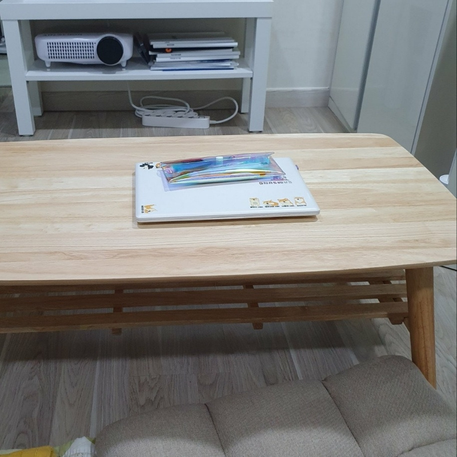 먼저 테이블은 취향을 반영하여 좌식 테이블 중심으로 살펴보되, 이전에 썼던 좌식 테이블이 아래쪽까지 턱이 져 있어 테이블 밑으로 다리를 넣지 못하는 점이 불편했기에 그 부분을 유의해서 서칭했다. 또한, 인테리어 주제에 맞는 우드톤으로 고르되, 테이블보를 추가 구매해 때때로 분위기를 바꿀 수 있도록 했다.
