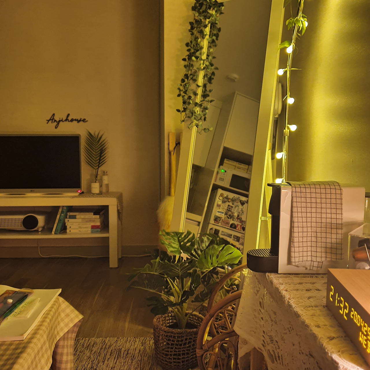 모든 인테리어의 완성은 조명이라는 말에 전적으로 공감한다. 불을 끄고 앵두 전구를 켜 두면 낮과는 또 다른 묘한 분위기가 펼쳐진다.