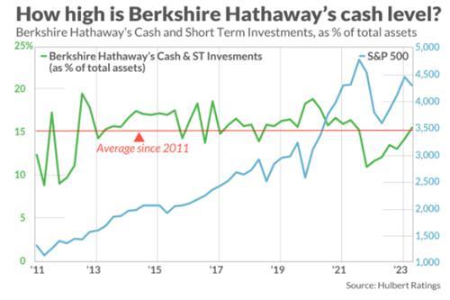 버크셔는 2011년 이후로 전체자산대비 현금비중을 평균 15% 정도로 유지했습니다.